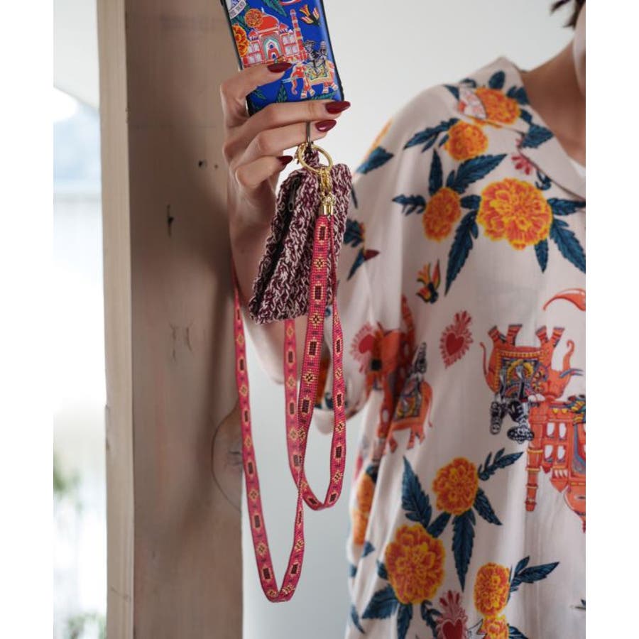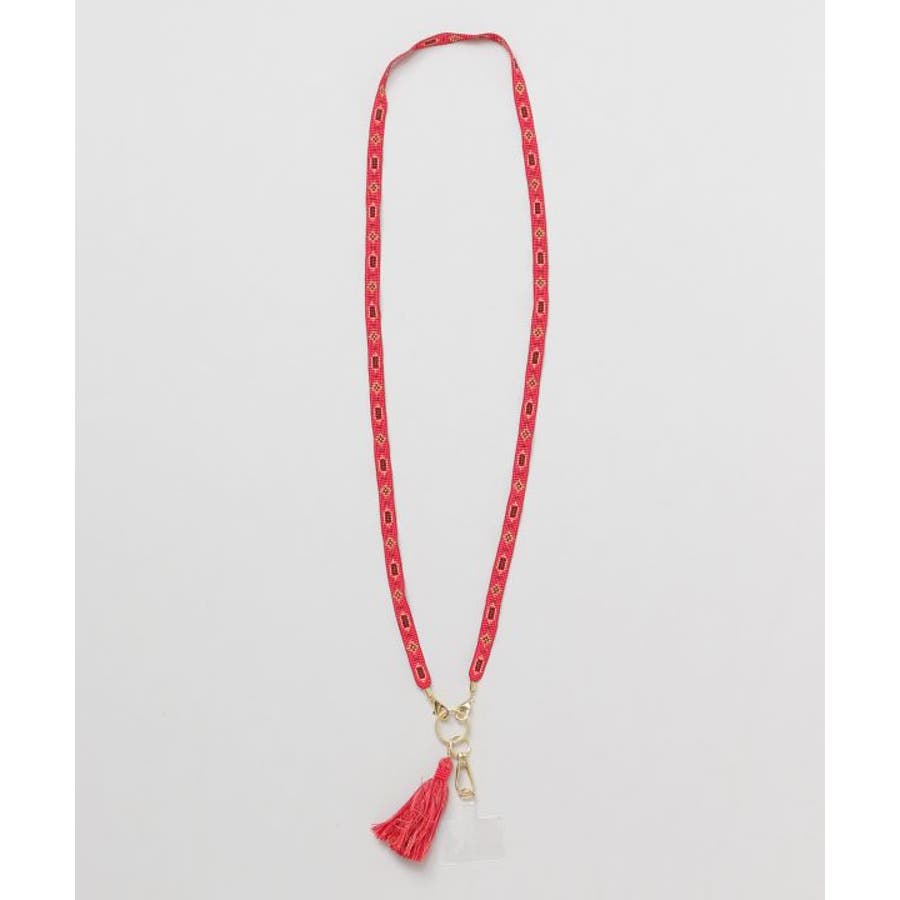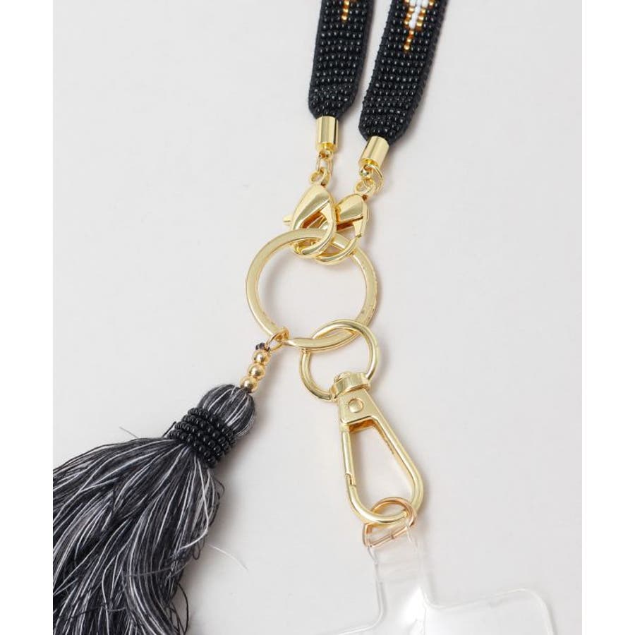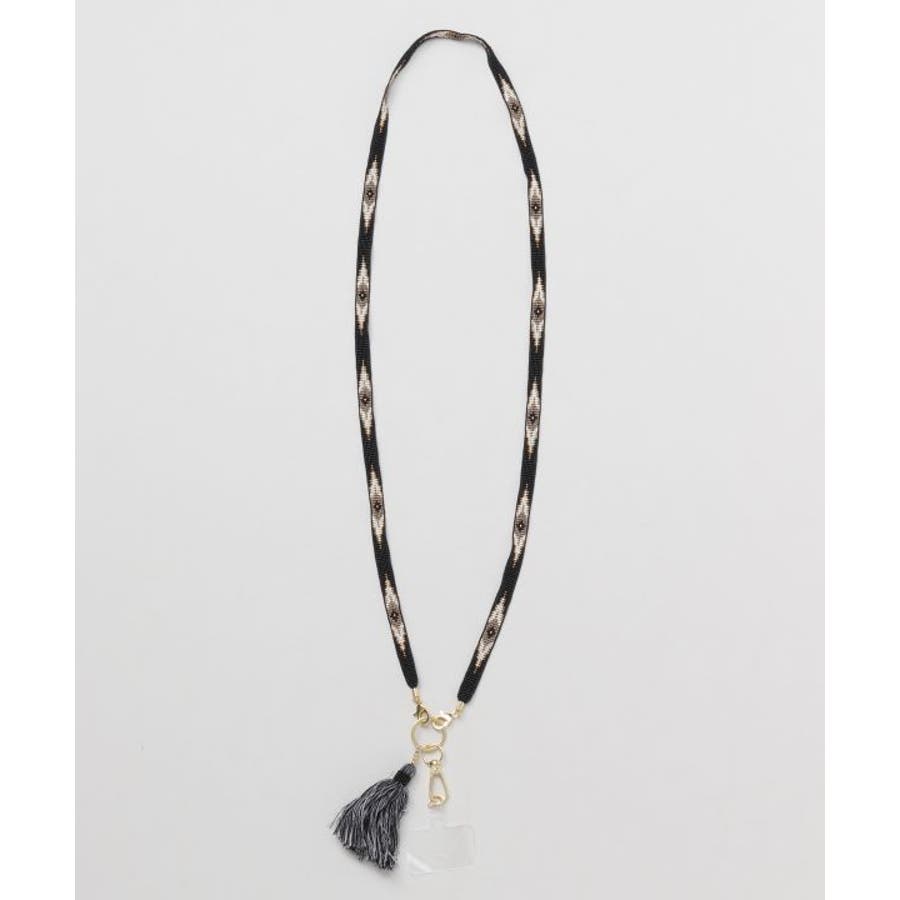 ネイティブアメリカンのオルテガ柄をビーズで編みこんだスマホストラップ。クリアストラップシート付き。お手持ちのスマートフォンを自分好みにカスタマイズして持ち運びが可能。肩掛けできるサイズです。