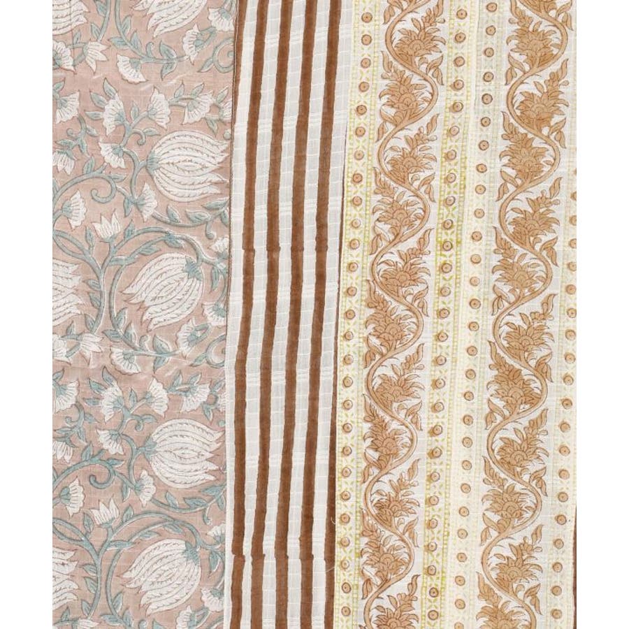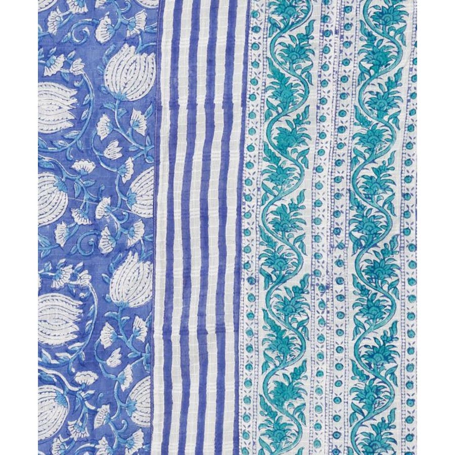 繊細に織り上げられたドビー生地を使用したメンズトップス。ウズベキスタン・サマルカンドの、ラピスラズリとトルコ石で表現された建築デザインからインスピレーションを受けデザイン。美しい石とタイルの陰影をブロックプリントで表現しました。縦のライン状の切り替えがポイント。