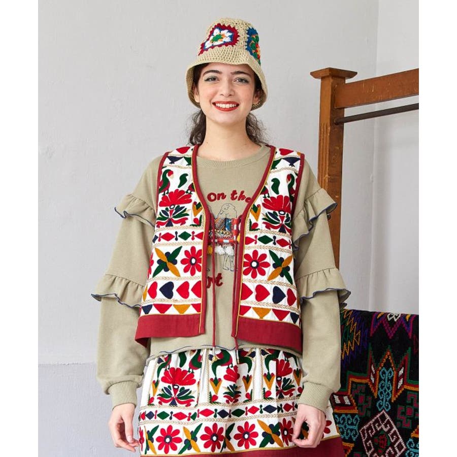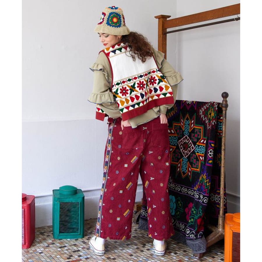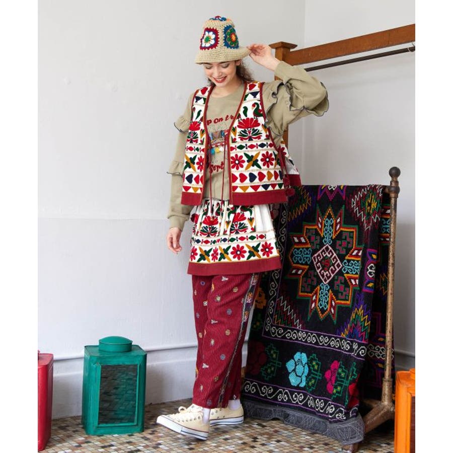| 素材 | BLACK / PINK:表地 綿 100% 裏地 綿 100% 刺しゅう部分 毛 100% WHITE:表地 綿 100% 裏地 綿 100% 刺しゅう部分 金糸 ポリエステル 100% その他 毛 100% |
