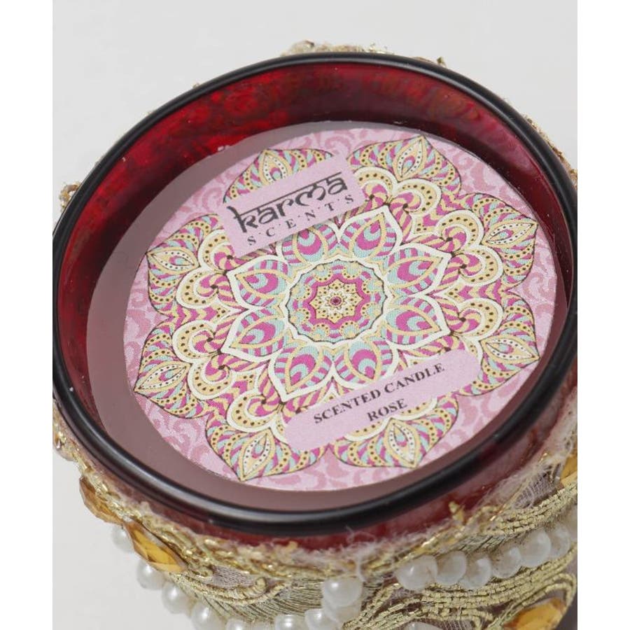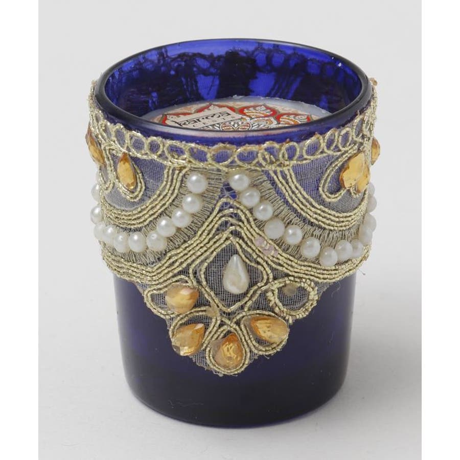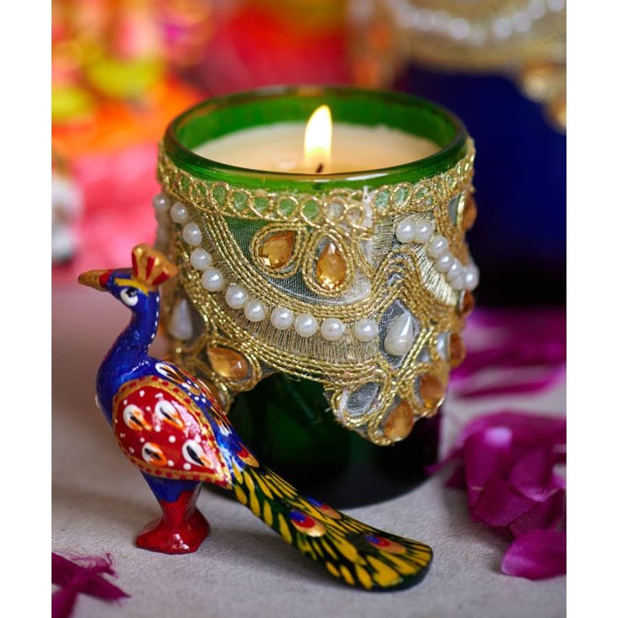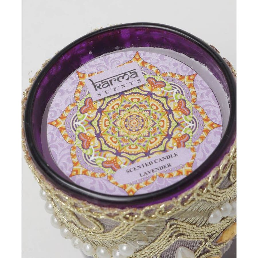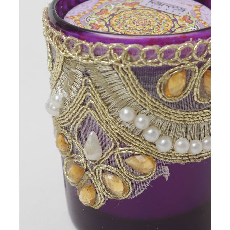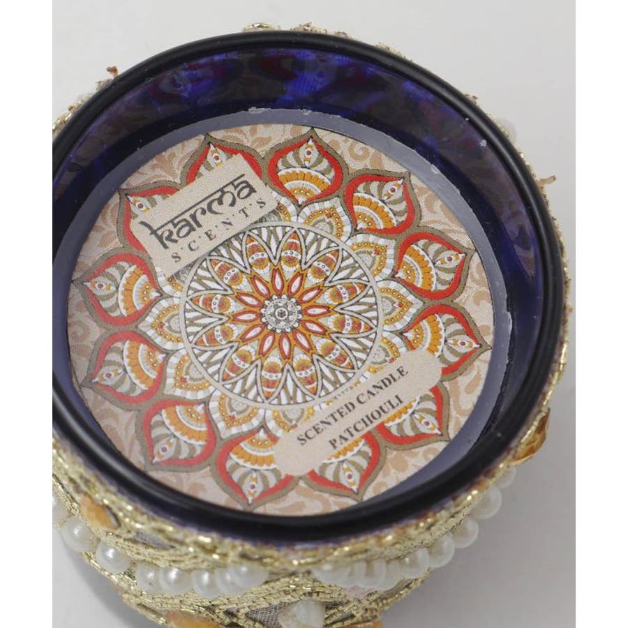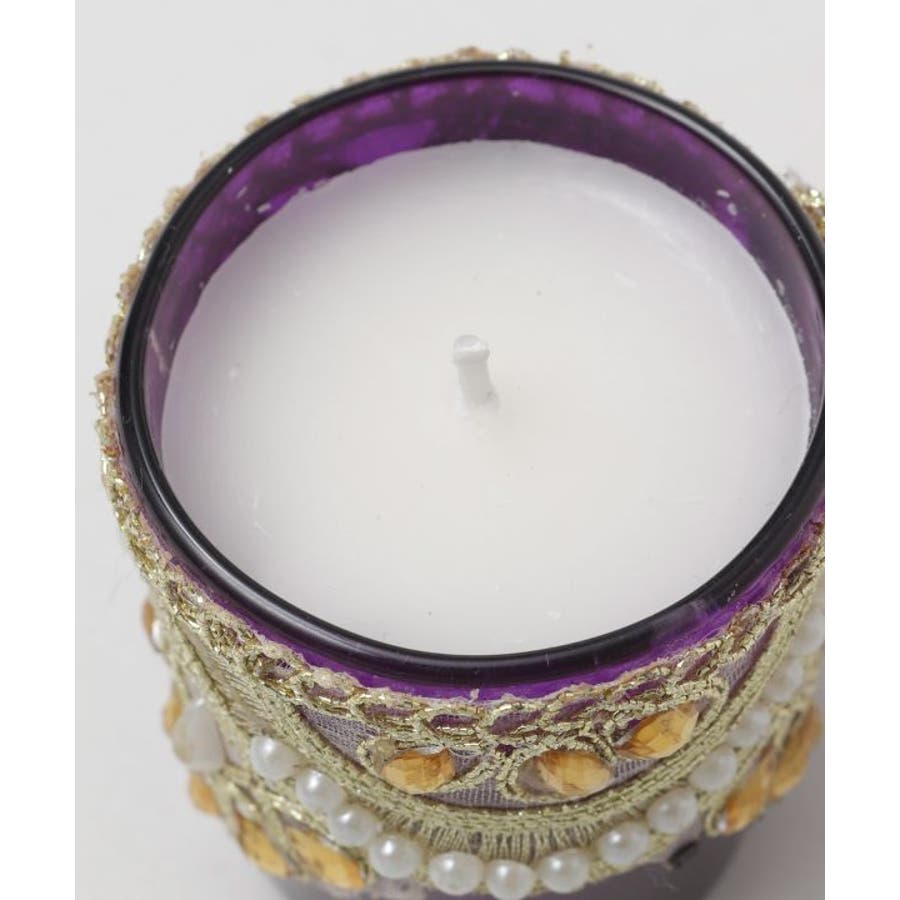 装飾が施されたカラフルなキャンドル 。インドのラジャスタンを感じさせるようなカラーリングで、空間をゴージャスに演出。5種類の香りが選べます。