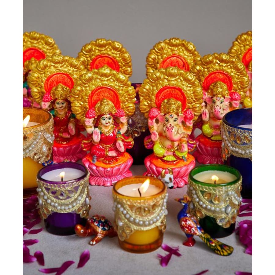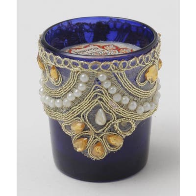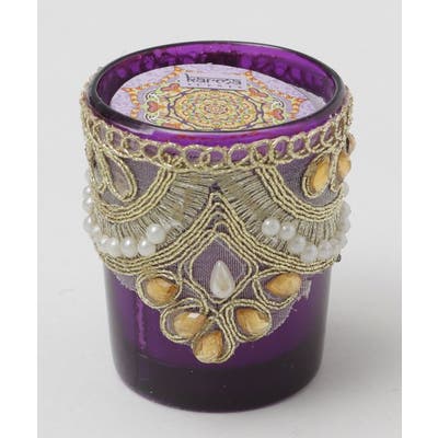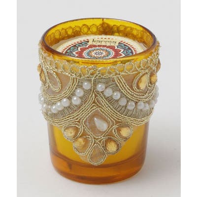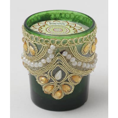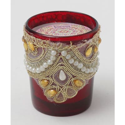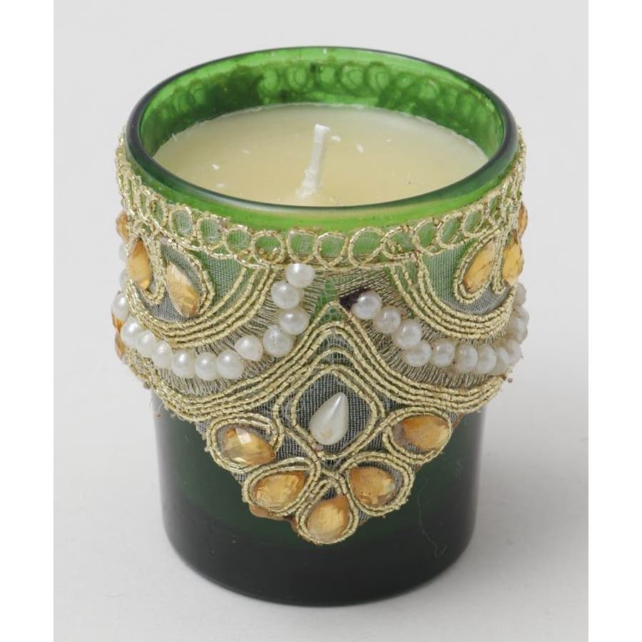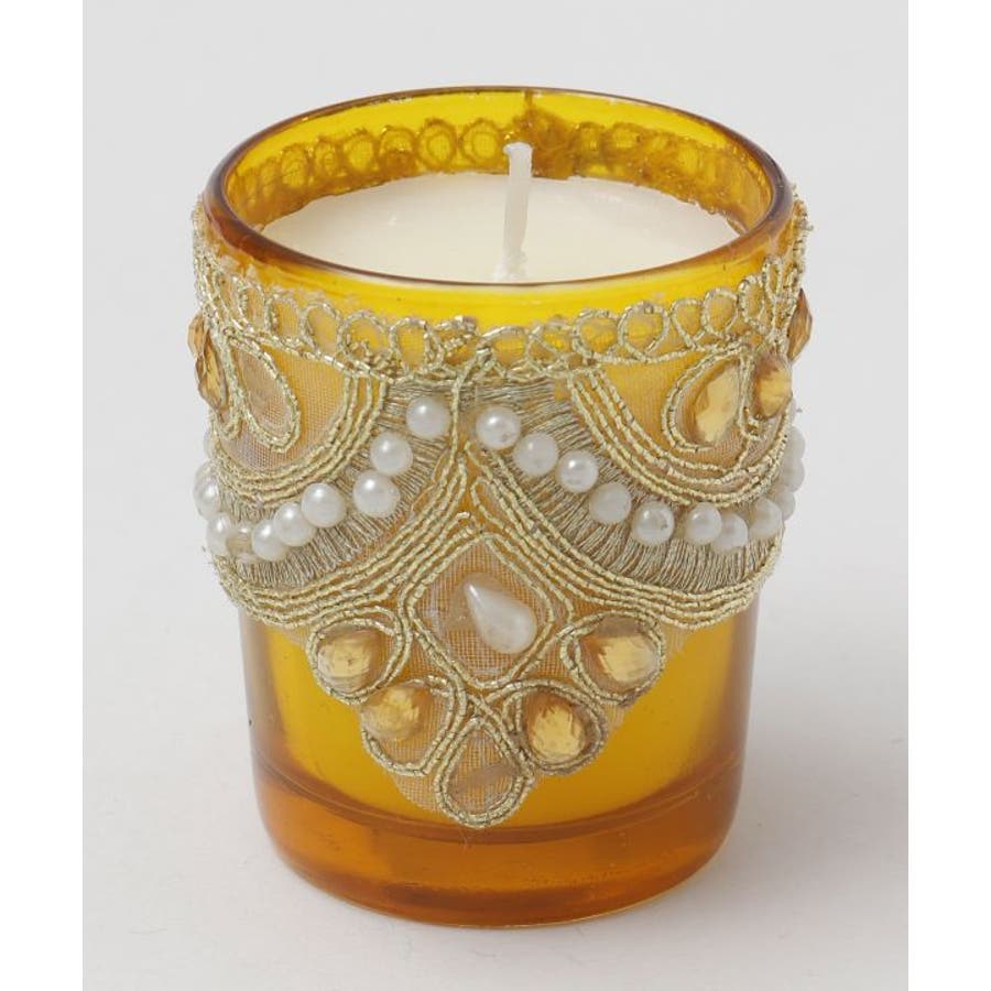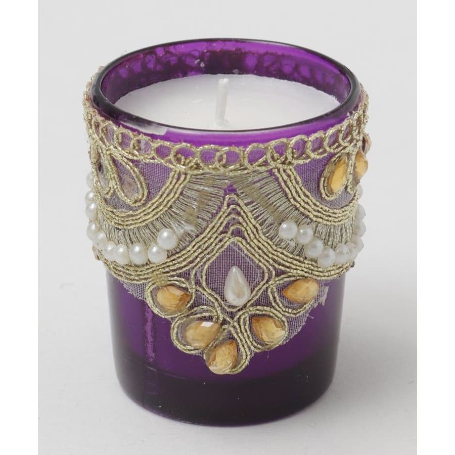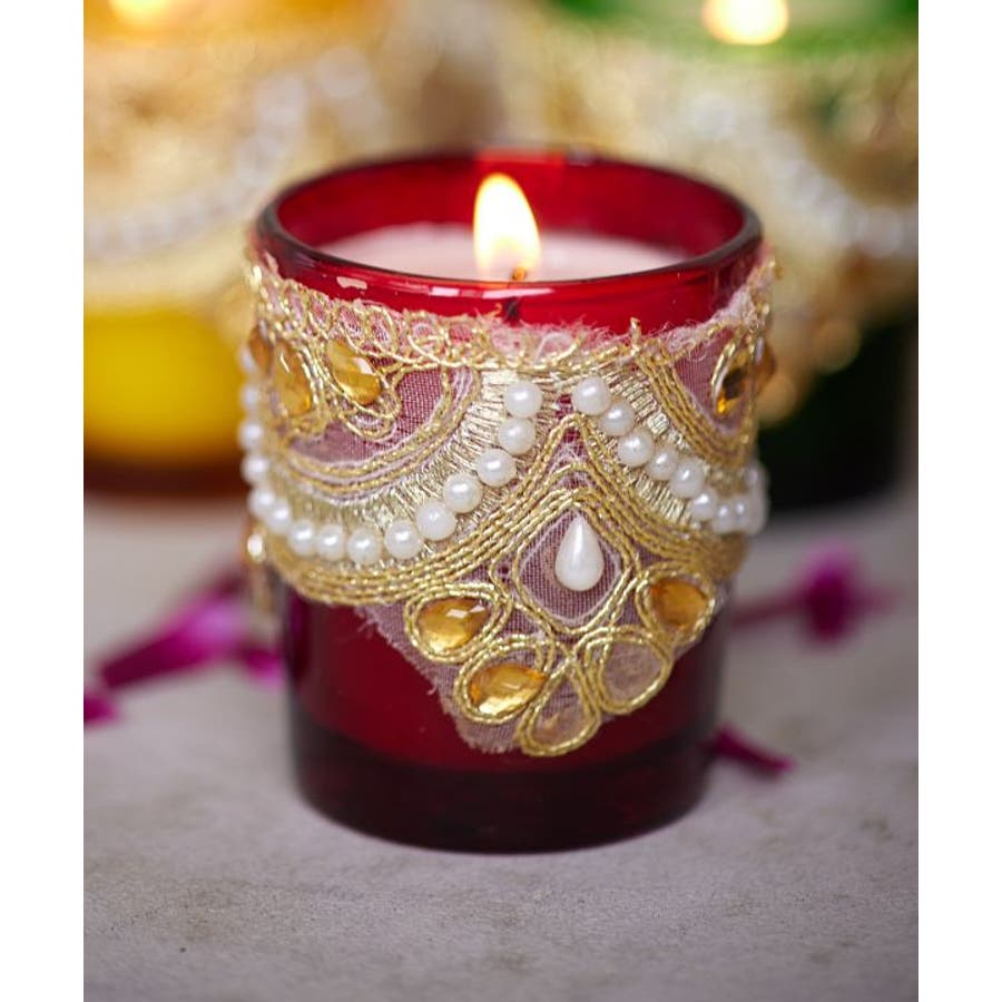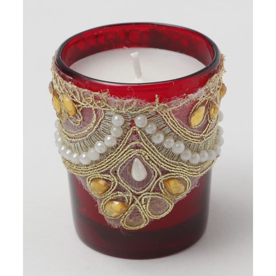 装飾が施されたカラフルなキャンドル 。インドのラジャスタンを感じさせるようなカラーリングで、空間をゴージャスに演出。5種類の香りが選べます。