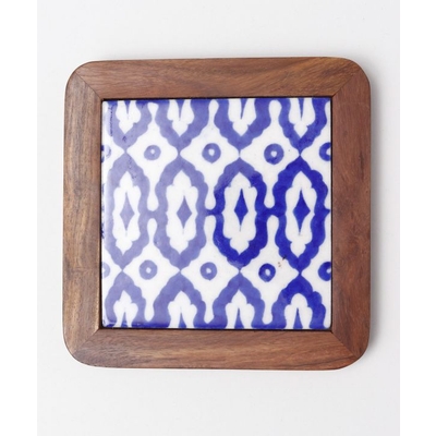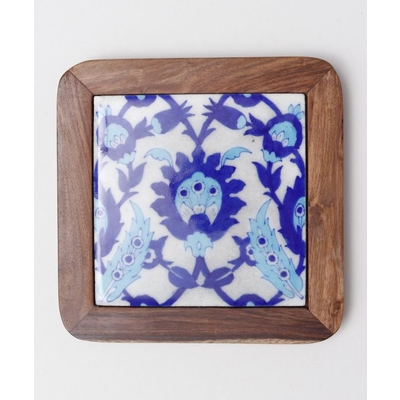 インド・ジャイプールの伝統工芸品である、ブルーポタリーの鍋敷き。ハンドペイントの色彩がインテリアを美しく彩ります。