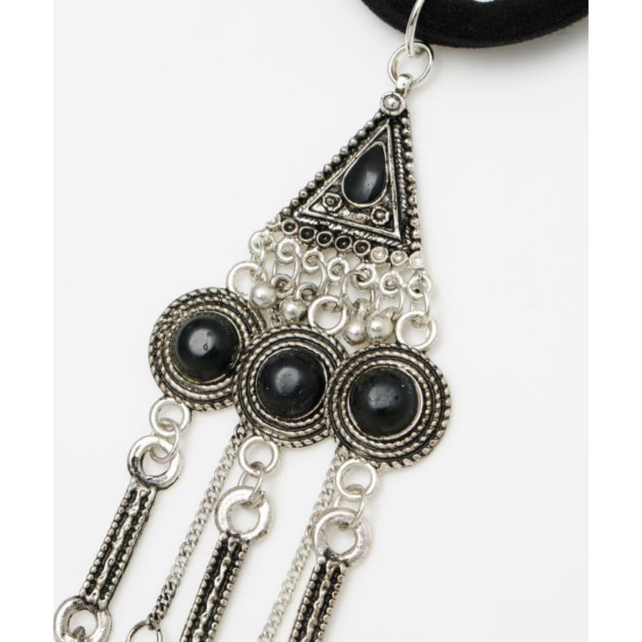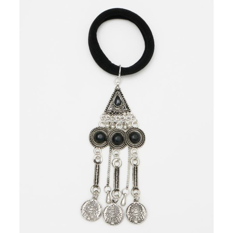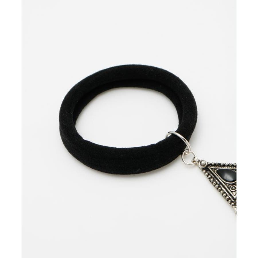 遊牧民の身に着ける飾りからインスピレーションを受けた、贅沢なチャームが目を惹くヘアゴム。ゴムの部分が太いので髪の毛に跡が付きづらくアレンジがしやすいのもポイント。ゆらゆらと揺れ動く装飾がアップスタイルに相性抜群のアイテム。