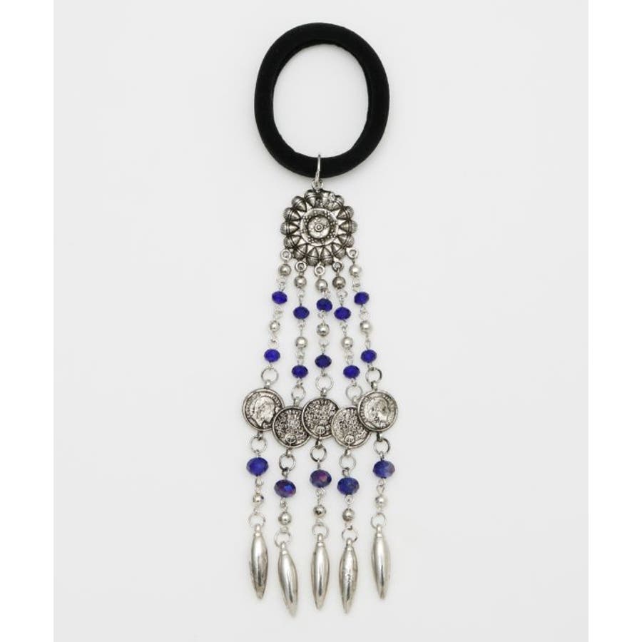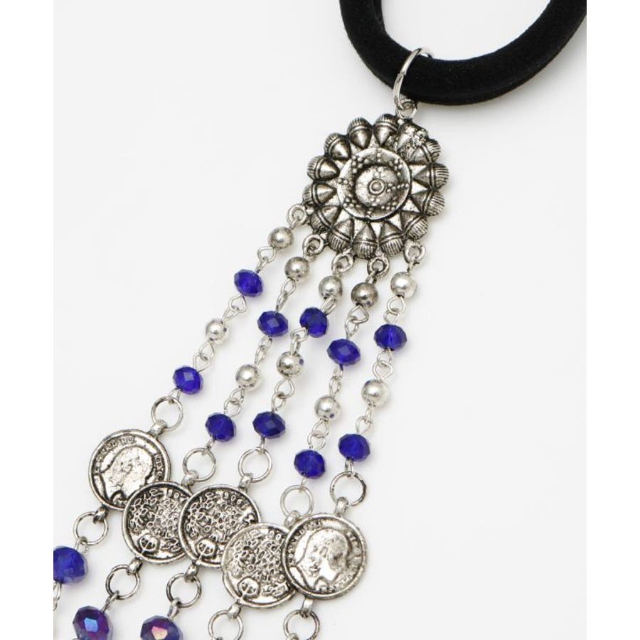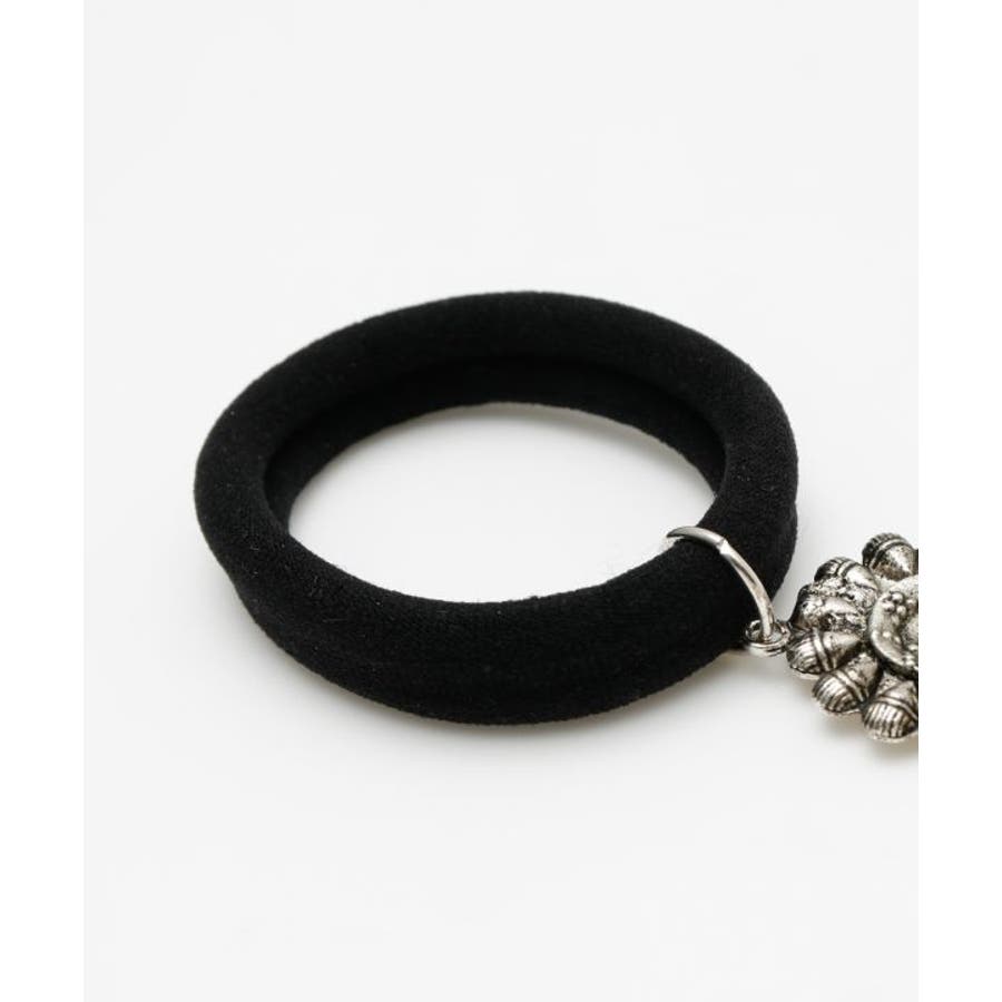 遊牧民の身に着ける飾りからインスピレーションを受けた、贅沢なチャームが目を惹くヘアゴム。ゴムの部分が太いので髪の毛に跡が付きづらくアレンジがしやすいのもポイント。ゆらゆらと揺れ動く装飾がアップスタイルに相性抜群のアイテム。