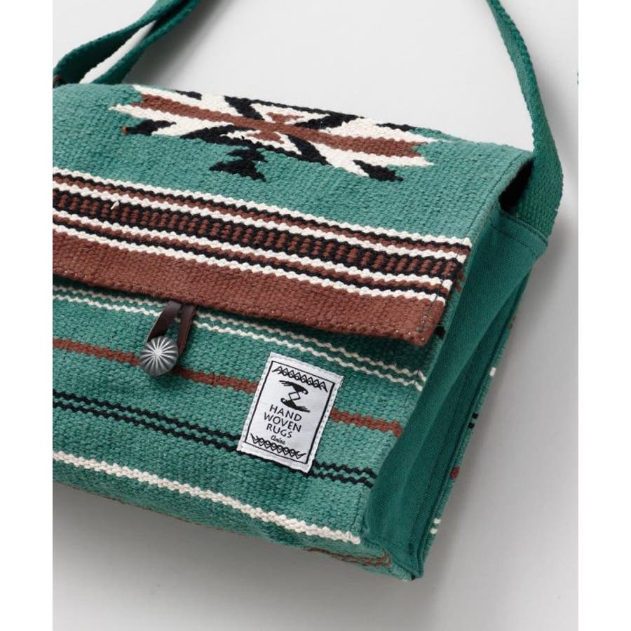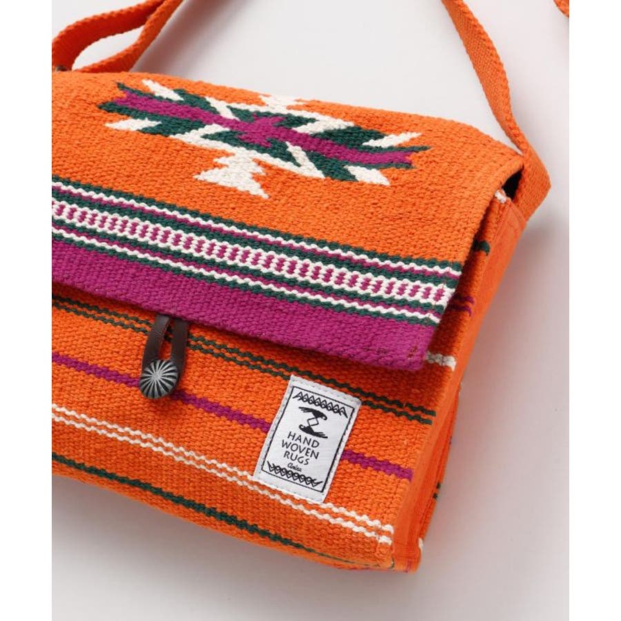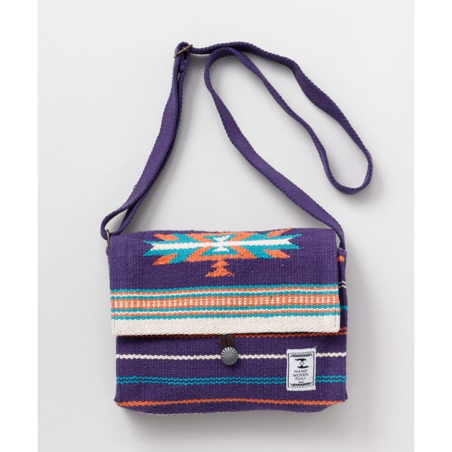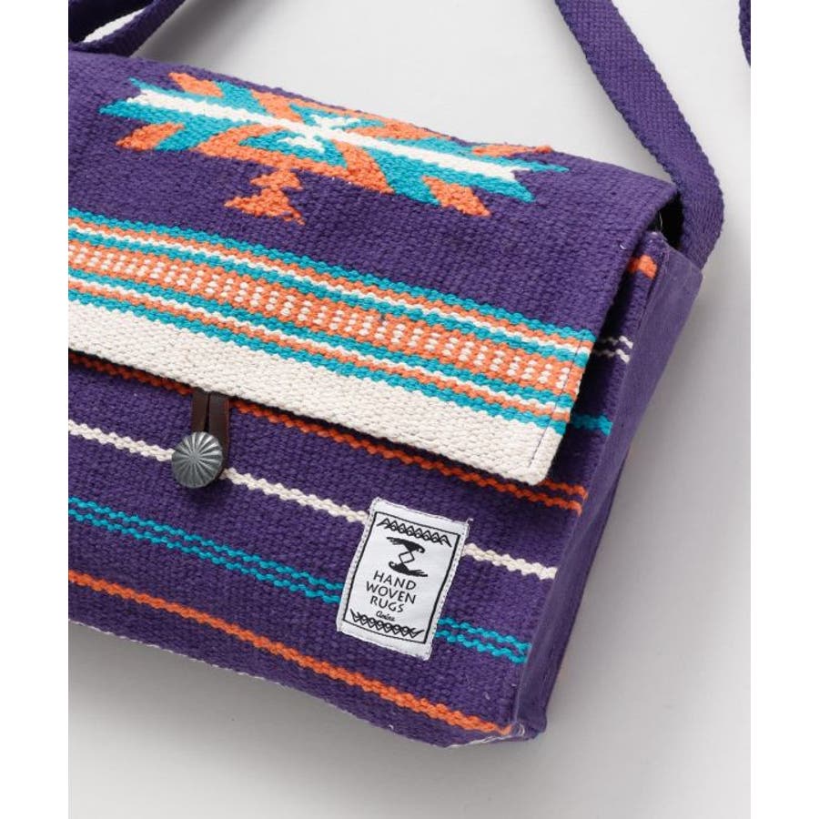 ラグで使われる厚手の手織り生地を使ったネイティブ柄ポシェット★コンチョボタンがワンポイント。コーディネートのアクセントにおすすめのバッグです◎