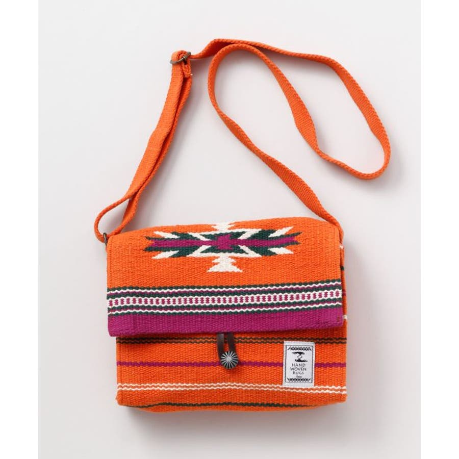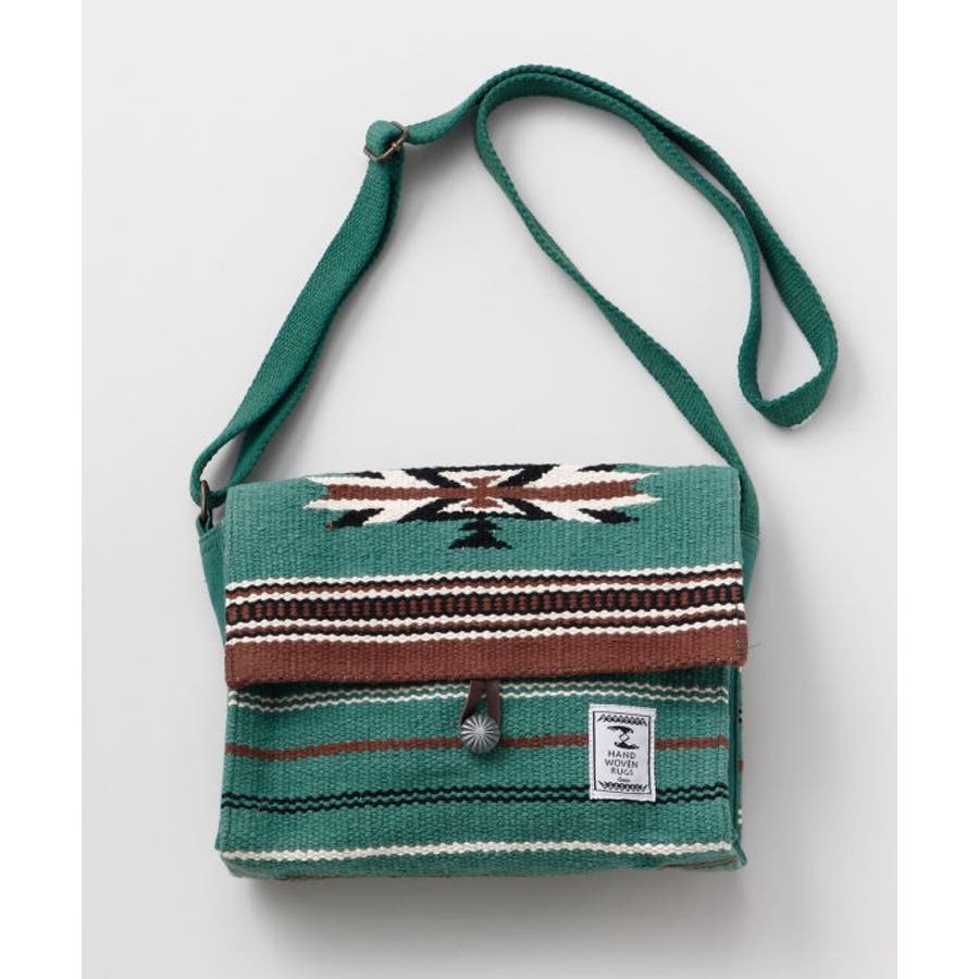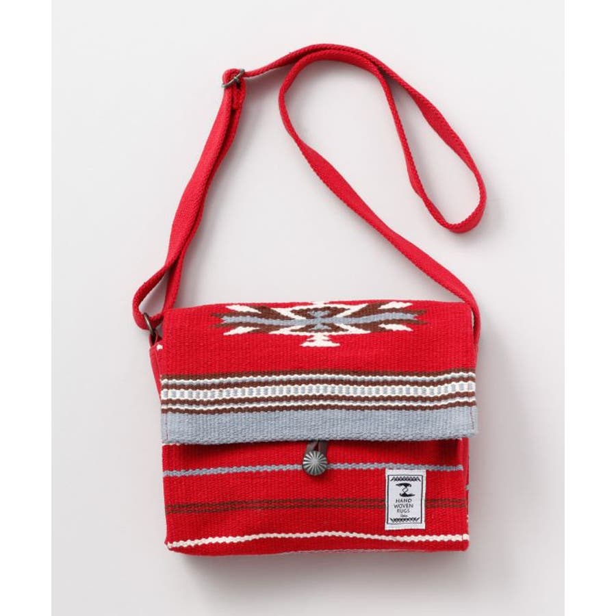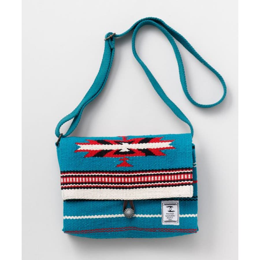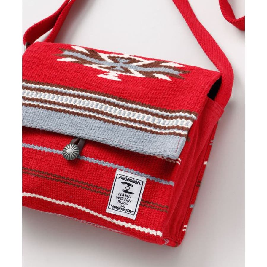 ラグで使われる厚手の手織り生地を使ったネイティブ柄ポシェット★コンチョボタンがワンポイント。コーディネートのアクセントにおすすめのバッグです◎