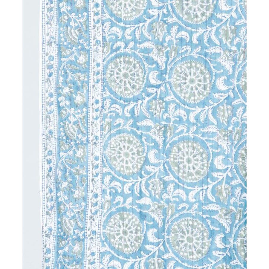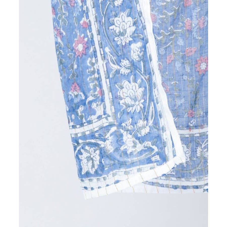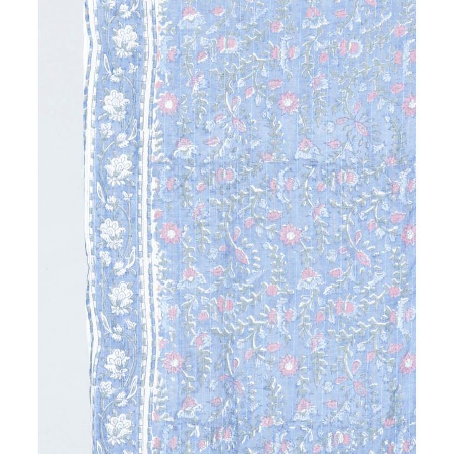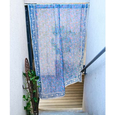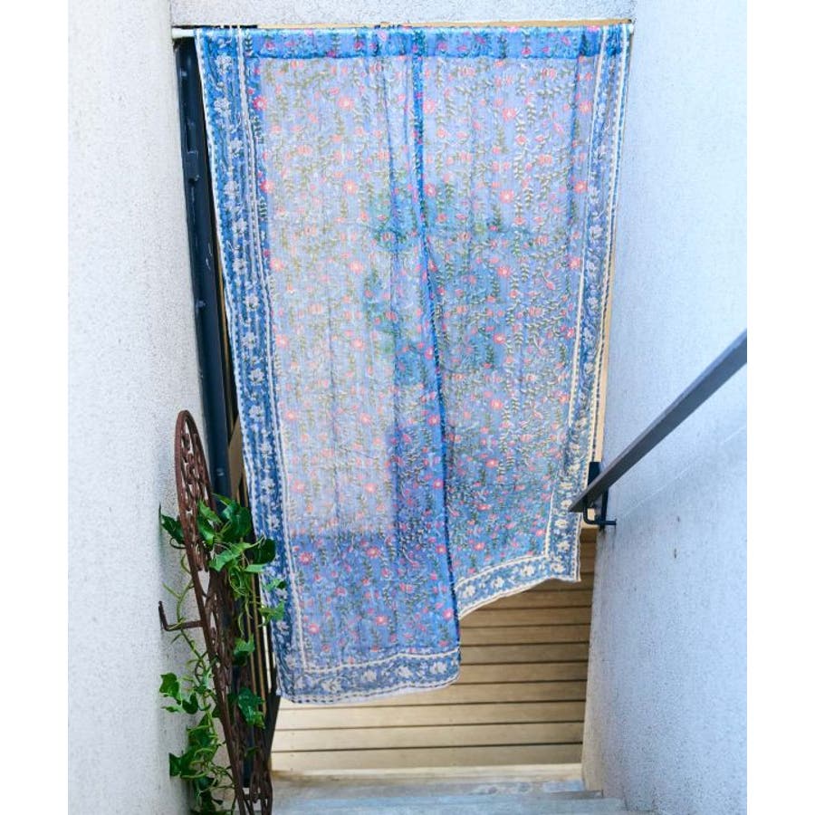 金糸が入った涼やかなブロックプリントのノレン。ハンドブロックならではの温かみある柄が特徴で、お部屋を非日常的な空間に彩ります。