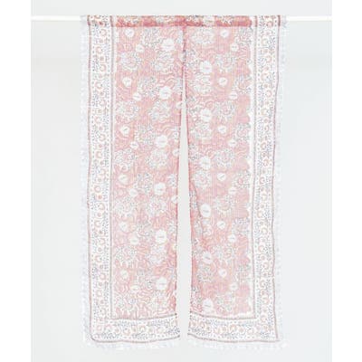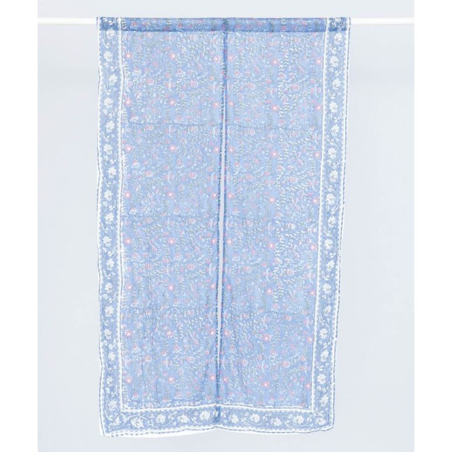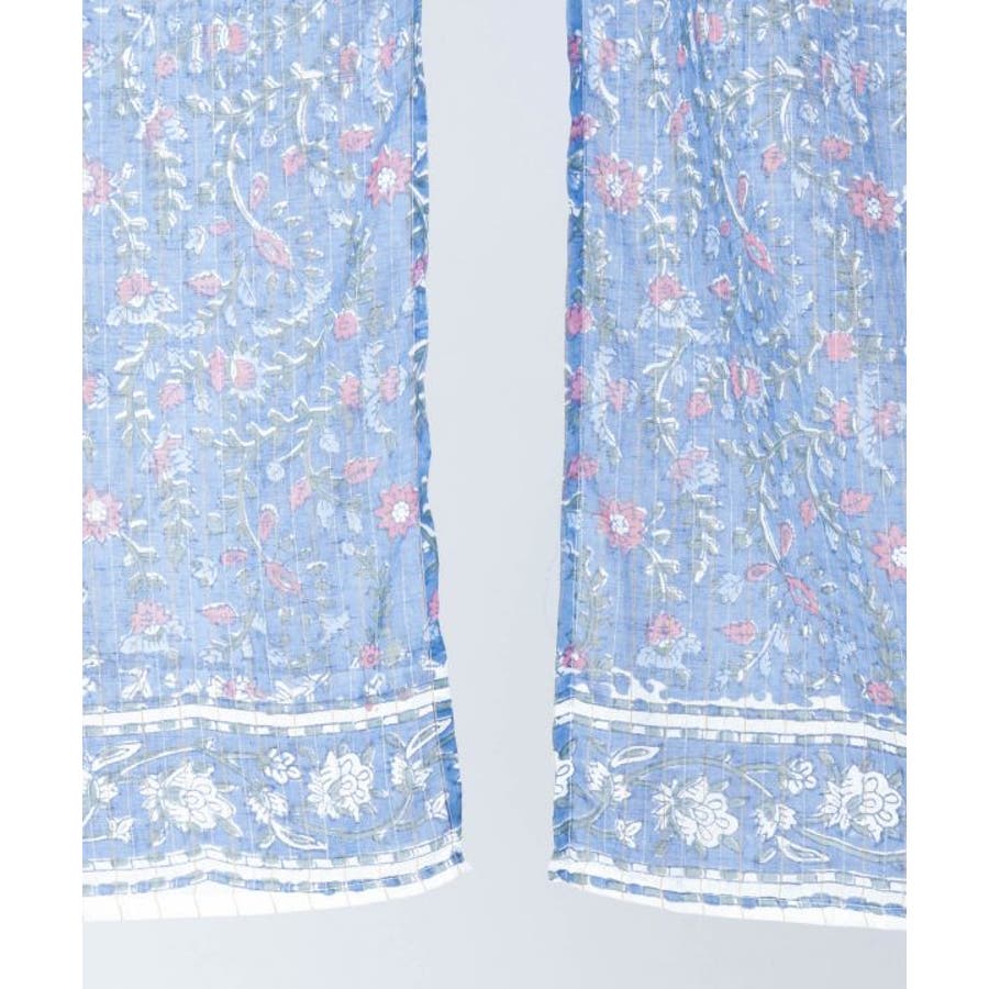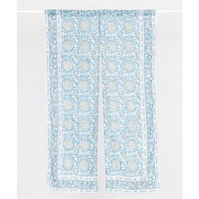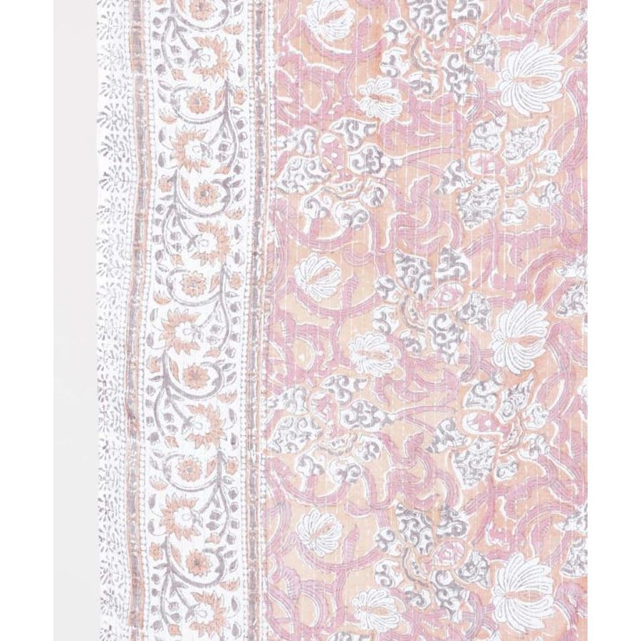 金糸が入った涼やかなブロックプリントのノレン。ハンドブロックならではの温かみある柄が特徴で、お部屋を非日常的な空間に彩ります。