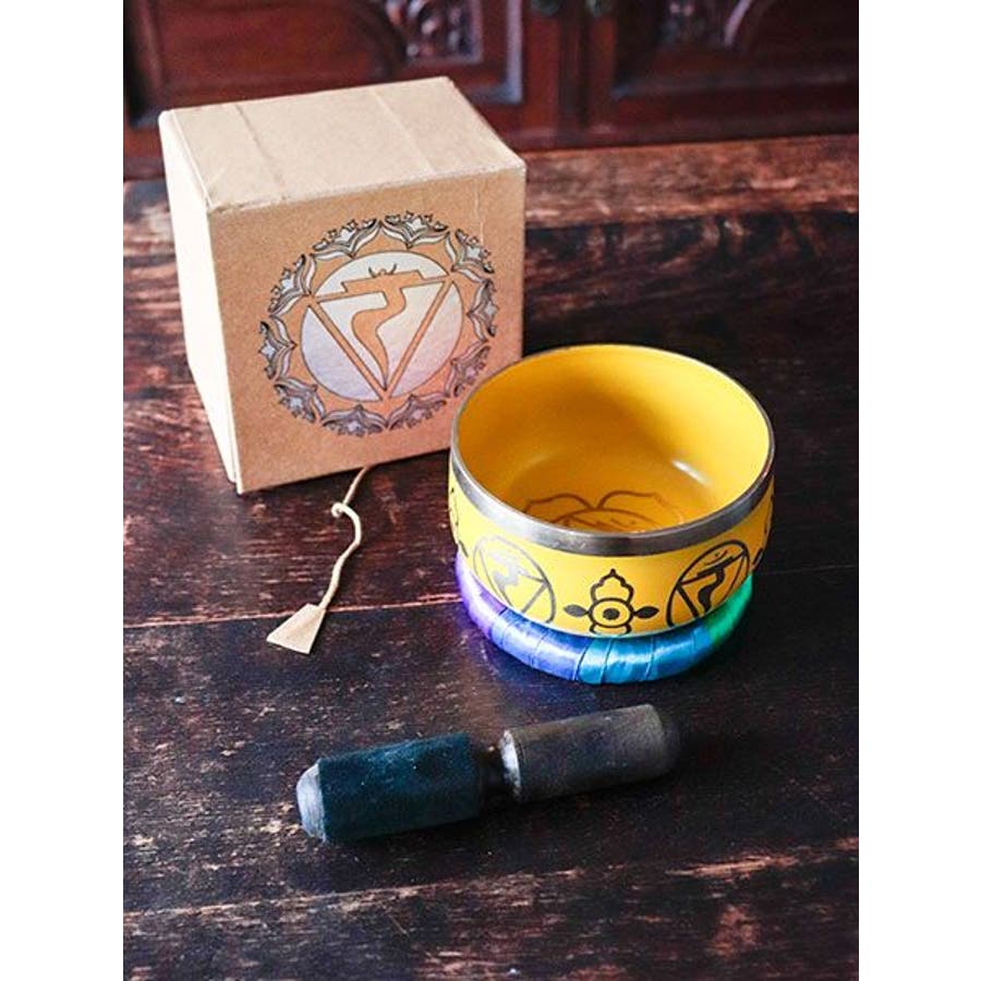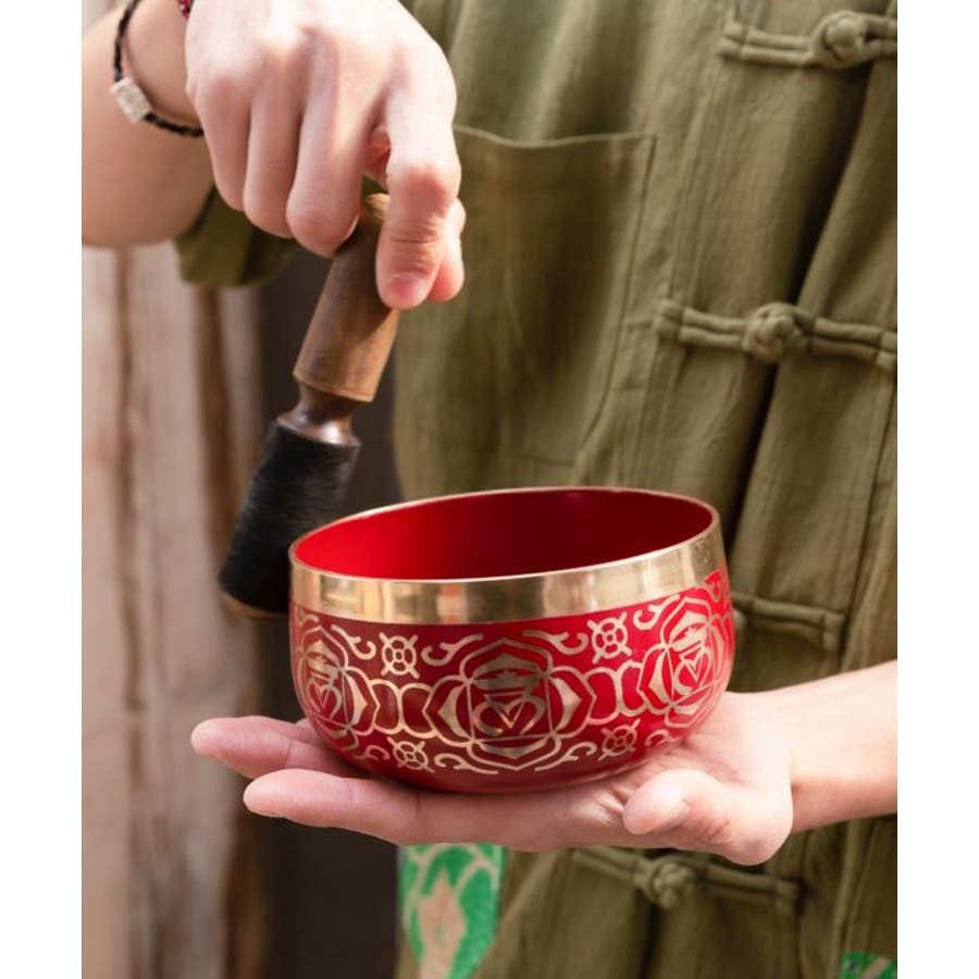 心身のヒーリングに。心を落ち着かせ、スティックで外側の縁をゆっくり円を描くようになぞると、澄んだ音が響き始める。瞑想やヨガにも用いられ、癒しの効果があると云われている。目を閉じて深く深呼吸し、美しい音色に身を委ねてみよう。