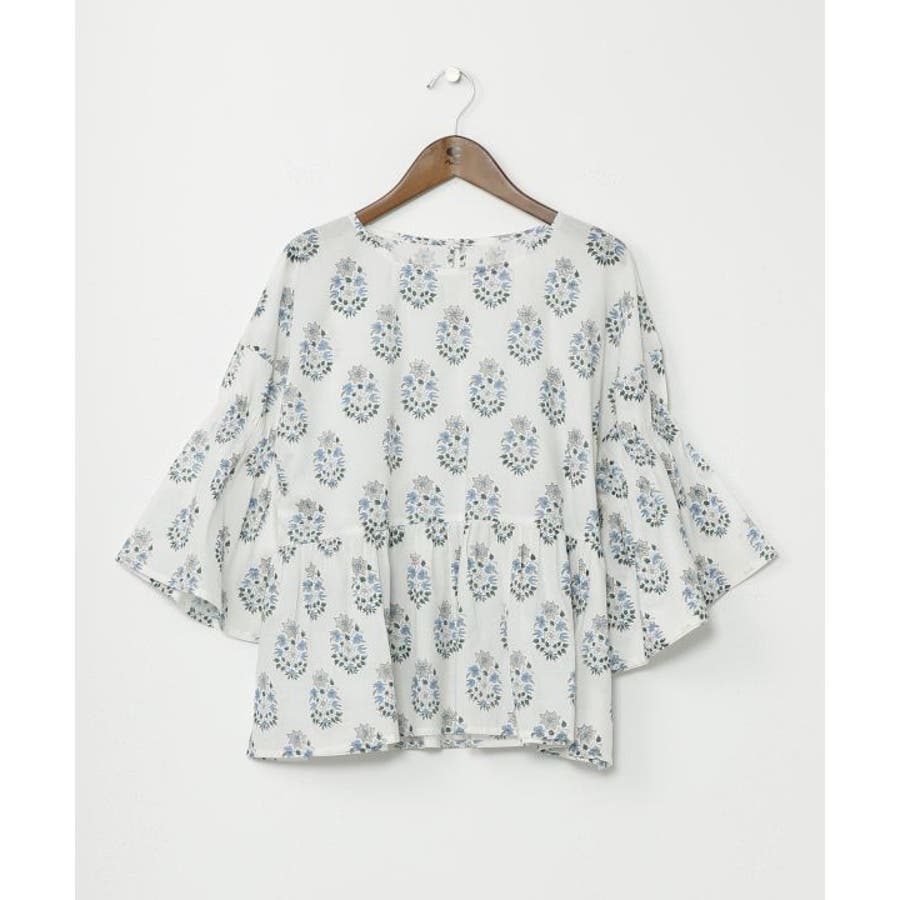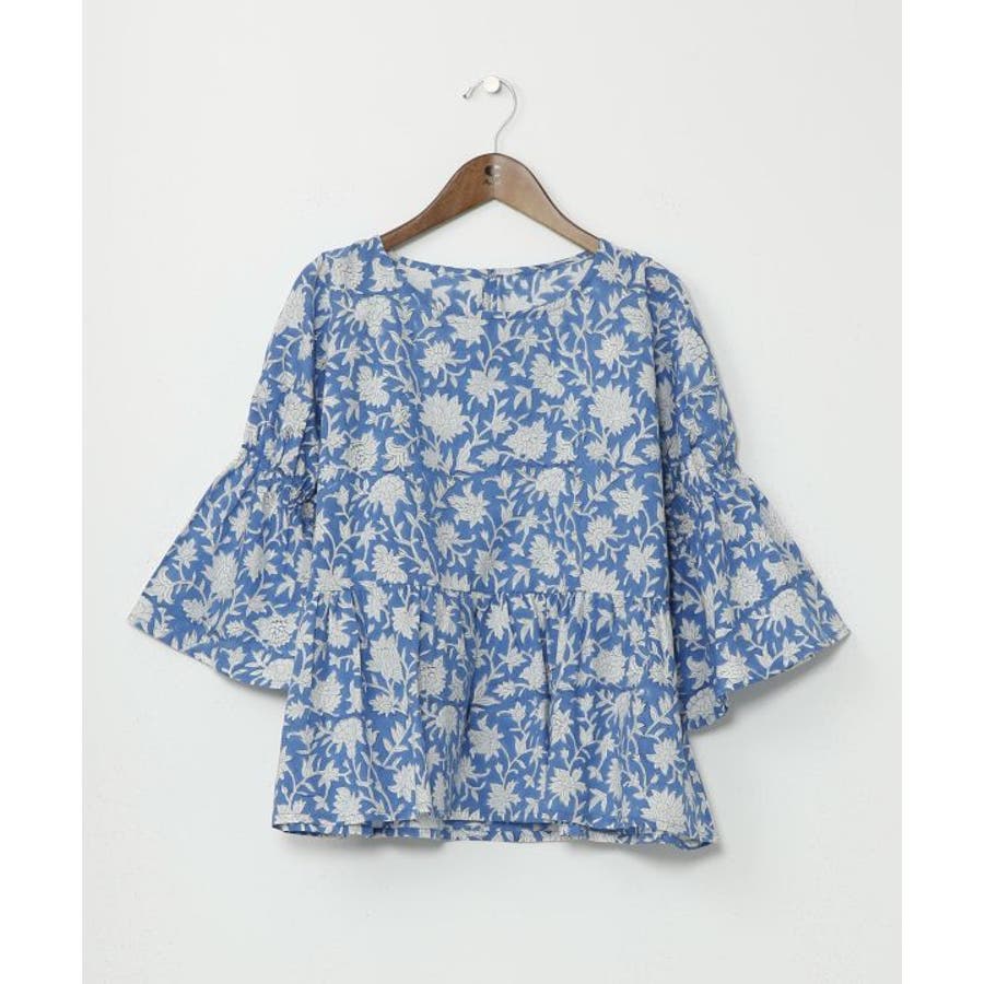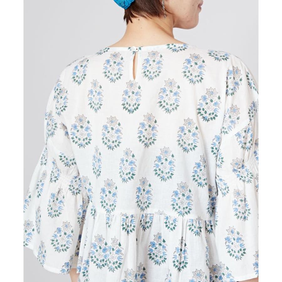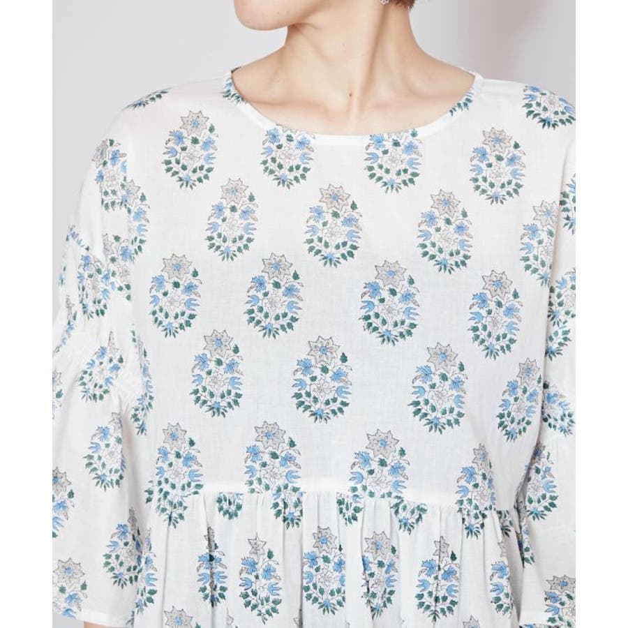 色柄ごとに異なる薄手のインド綿が涼しいブロックプリントトップス。袖のシャーリングステッチがふわっと感を演出しコーディネートを引き立たせます。長めの袖丈は強い日差しの日よけにも。