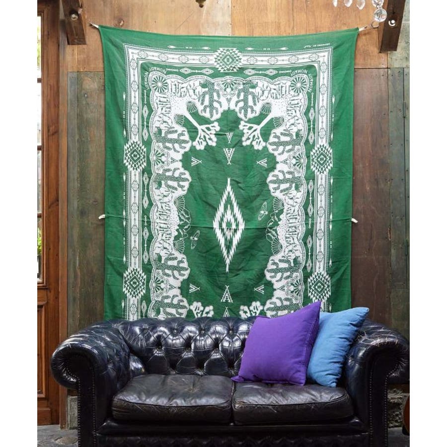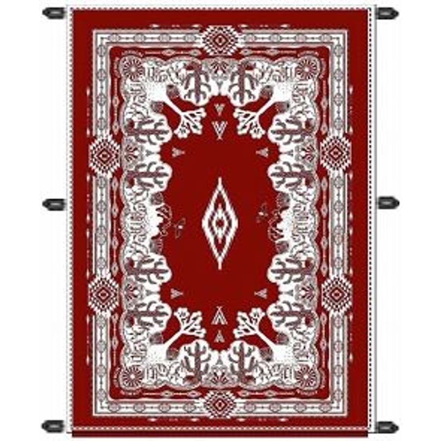 ネイティブアメリカンの聖地をイメージしたマルチクロス。聖地とされるセドナの赤い大地や山、力強く根を張る植物など自然を愛するネイティブアメリカンならではのデザインが魅力。裏に6つのループ付きでベッドカバーやタープクロスなどマルチに使えます。