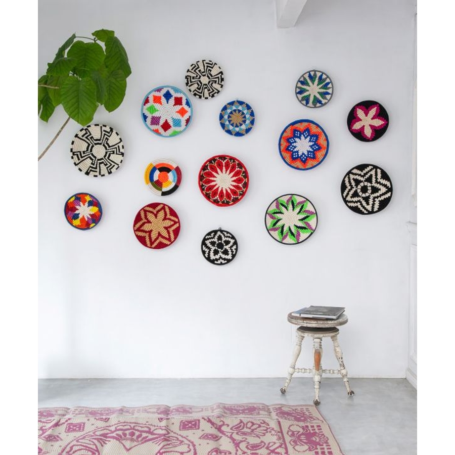 インドの上質な天然繊維サバイ草で作られた、ウォールバスケット。サバイ草は長年にわたり地域の女性たちから伝えられ続けて、壁掛けやカゴやバッグなどの生活用品に応用されており、ハンドメイドの温かみを感じられる。シックな色使いで入れ物としてはもちろん、ウォールインテリアとして壁にかけるのもおすすめ。