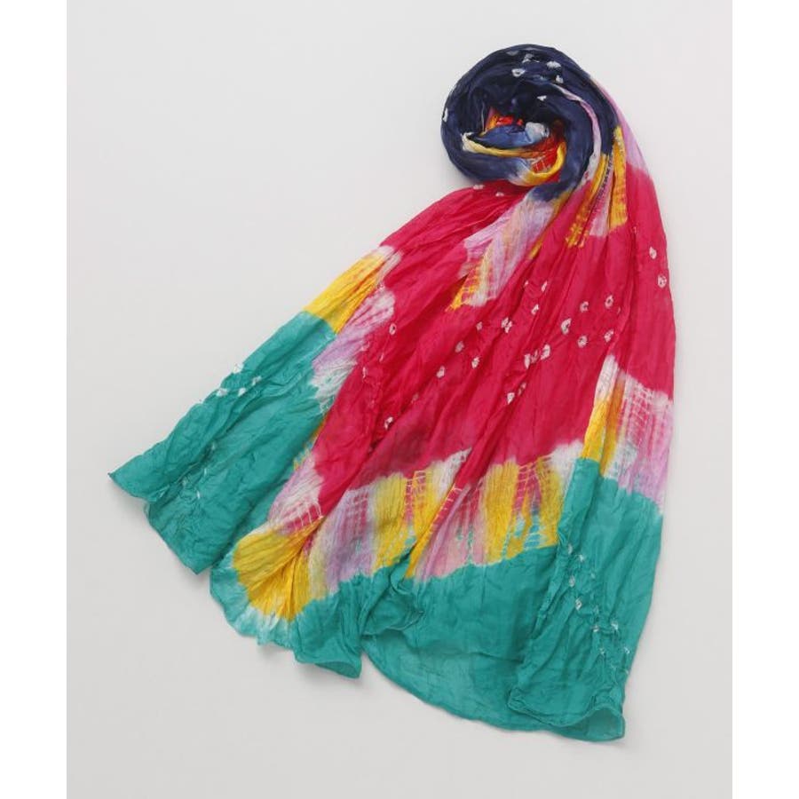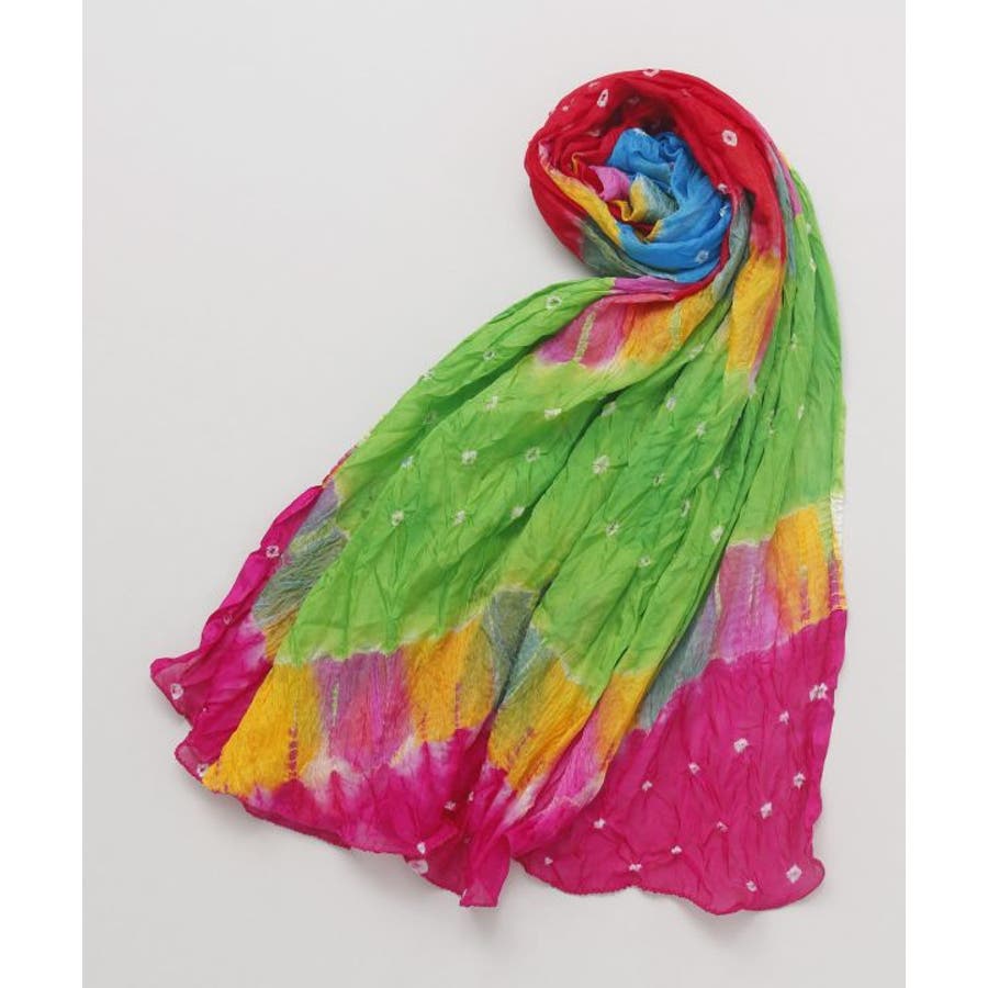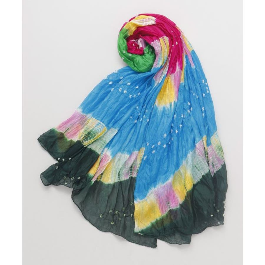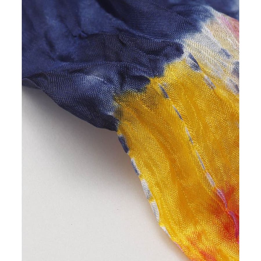 さらりとした手触りのナイロン100%ストール。ひとつひとつ手染めの為、色の出方にばらつきがあります。軽くもたつかないのでオールシーズン使用可。コーデのポイントにも主役にもなります。