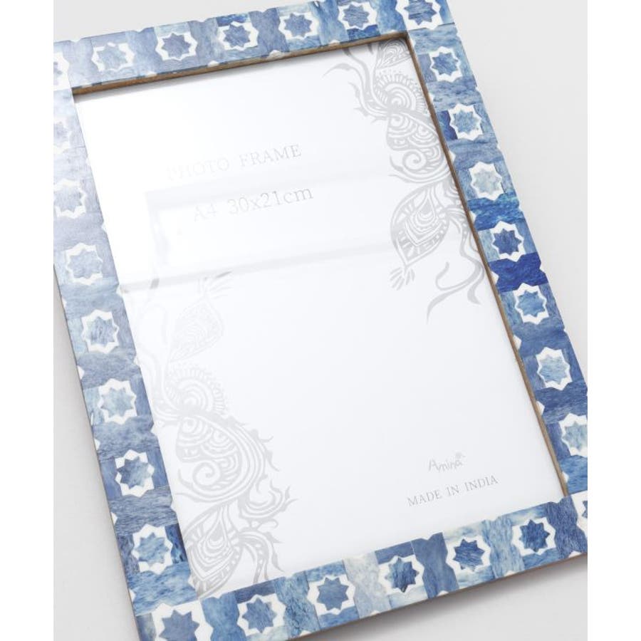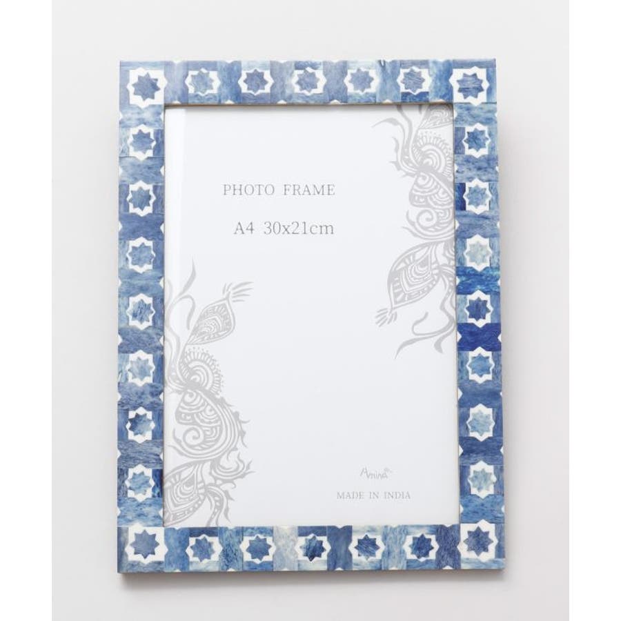 インドの伝統的な技法を用いたフォトフレーム。写真はもちろん、布やリーフレットを入れてインテリアのワンポイントに。A4サイズ30x21cm以内が収納可能。