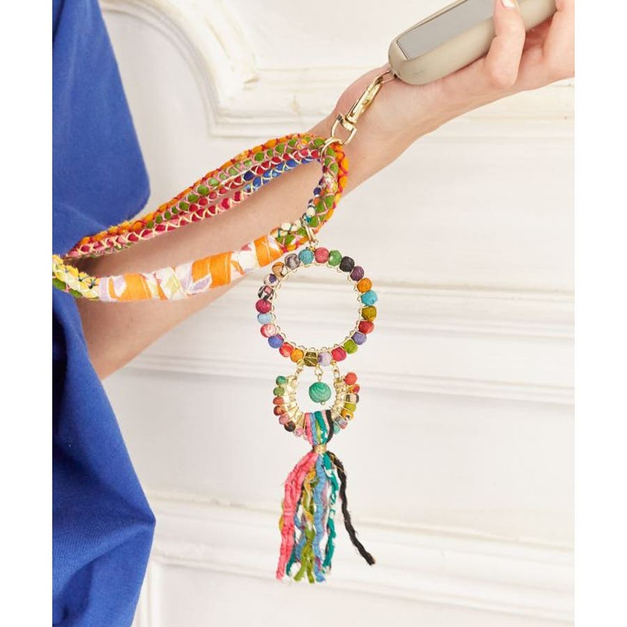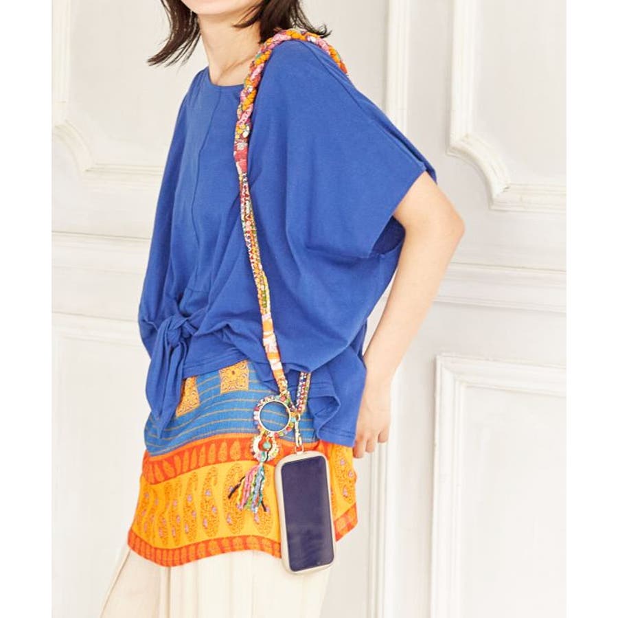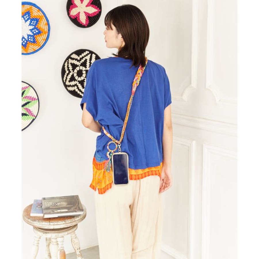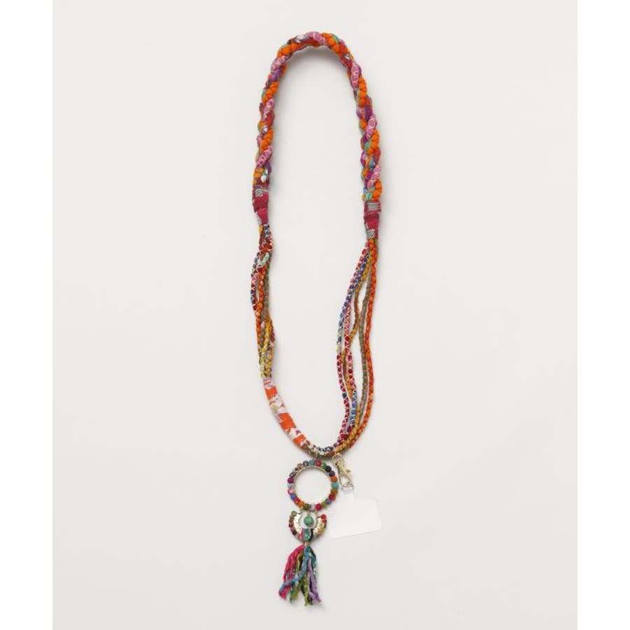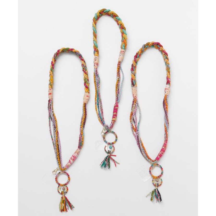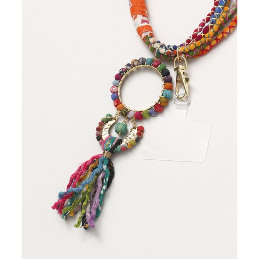 インドのリサイクルファブリックから丁寧に手作りされています。デリーで女性支援の活動の一環として商品作りを行っています。ショルダータイプのスマートフォンストラップ。付属のカードをお持ちのスマートフォンケースに挟んでご使用ください。