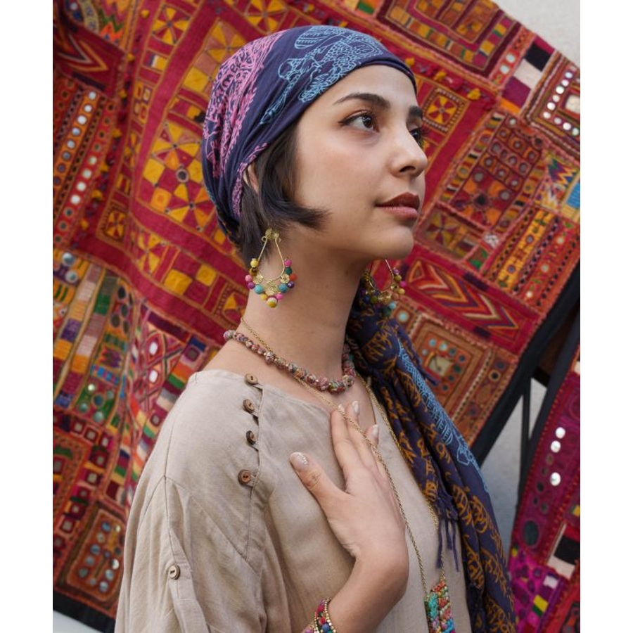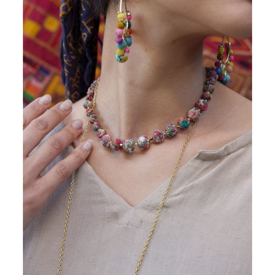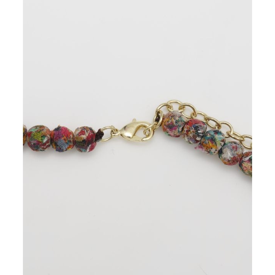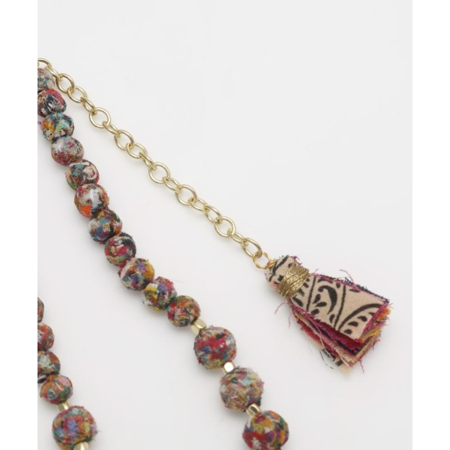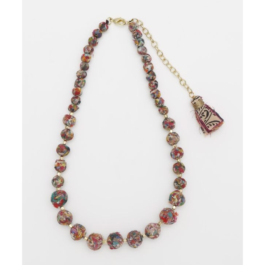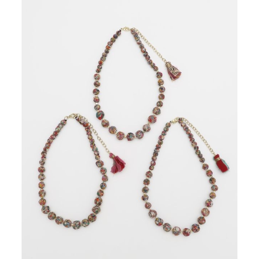 インドの女性たちによって作られた一点一点思いが込められたハンドメイドアクセサリー。大きさの異なるボールデザインとカラフルな色使いが首元を華やかにしてくれる。さりげないタッセルが可愛い、調整可能ネックレス。
