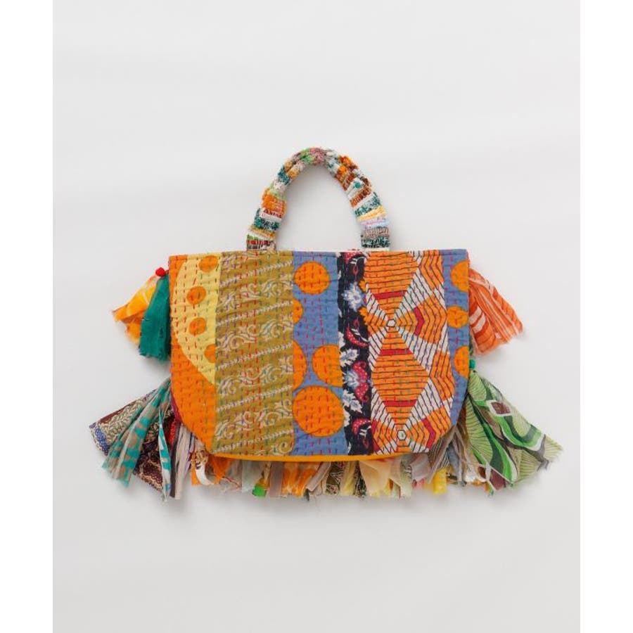 インドのオールドサリーを裂いて織った、オリジナルの裂き織素材が魅力的なミニバッグ。アソートならではの一点ものには出会いあり。マチもあり、見た目以上の収納力があるのも魅力。