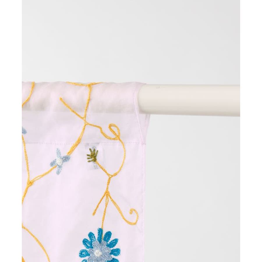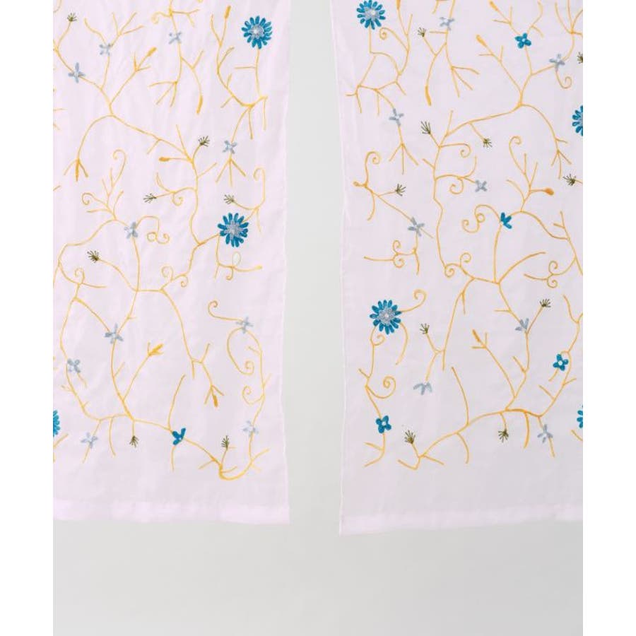 透け感ある素材に花柄をのせたインドノレン。光をやわらかく通し、空間に軽やかな印象をプラス。優しい彩りが暮らしにそっと寄り添います。