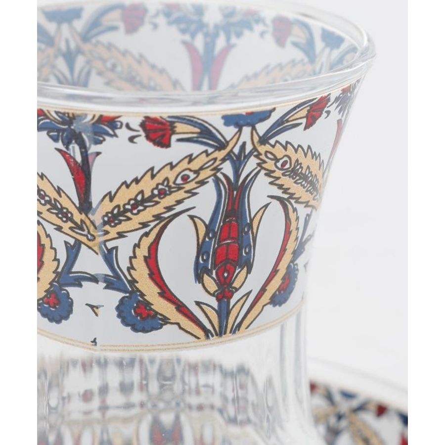 トルコでは家庭で、チャイハネ(寄合茶屋)で、1日何杯も温かいチャイを飲みます。特徴的なこの丸みを帯びた形は、古くからトルコにて愛用されている伝統的なスタイルです。イスラム模様やトルコの花であるチューリップ等のデザインが施されています。
