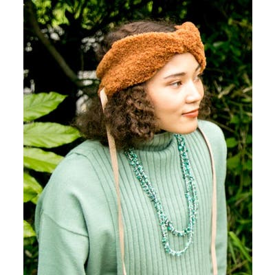 柔らかなカラーリングのボア素材を使ったヘアバンド。飾りのコード(紐)はそのまま垂らしたり、結んだり、自由にアレンジをお楽しみください。