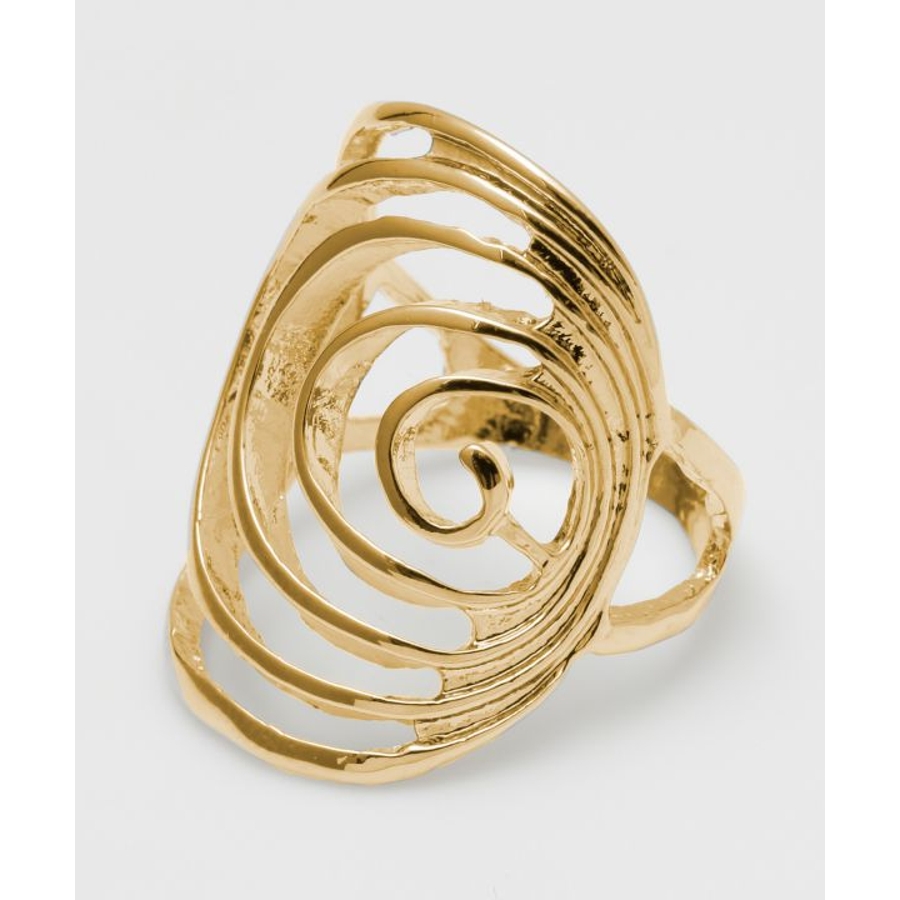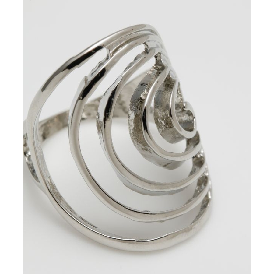 渦巻き模様が特徴的なリング。透かしがあるので、重たすぎず合わせやすい。シンプルなのでどんなコーデにも合わせやすい。