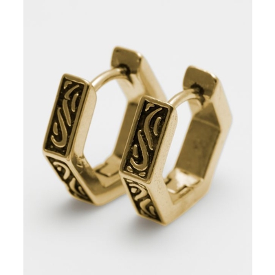 六角形がモチーフのピアス。さり気ない模様がポイント。ステンレス素材なので錆びにくく、取り扱いしやすいです。