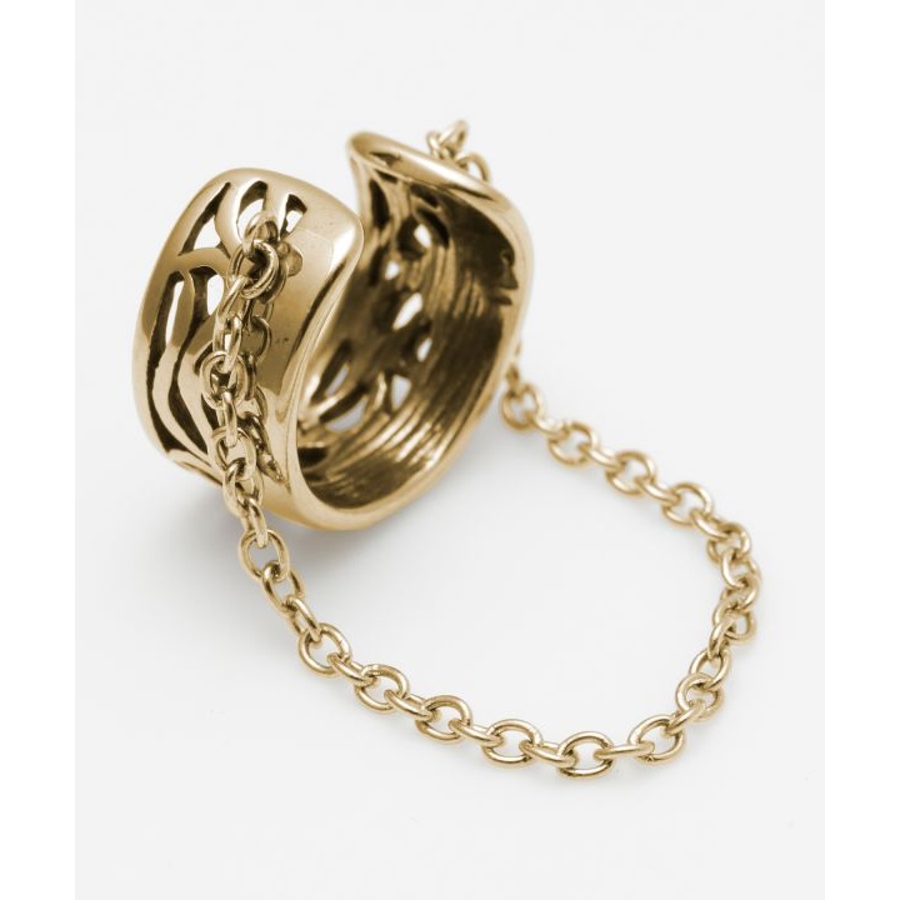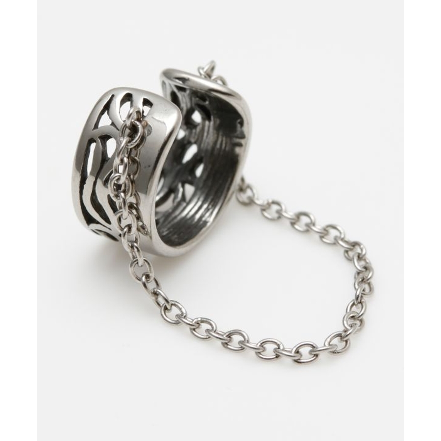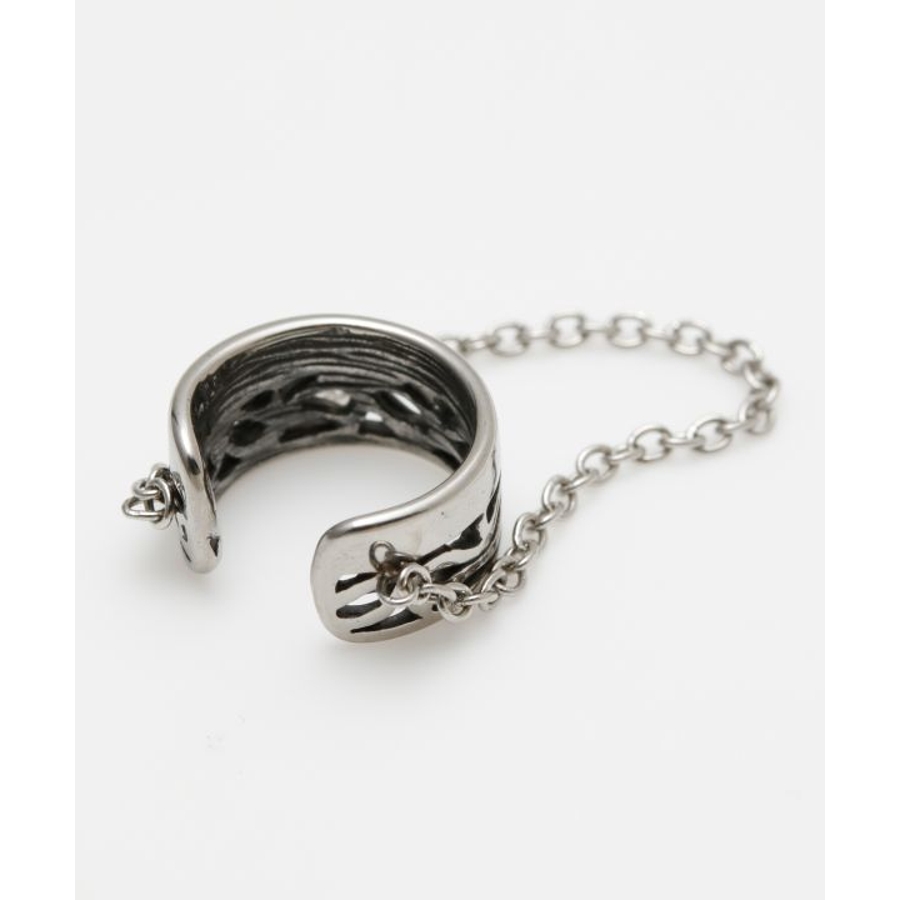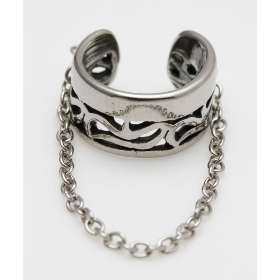 チェーン付きのシンプルなイヤーカフ。ステンレス素材で水に濡れても錆びにくく、普段使いしやすい。透かし模様とチェーンとの組み合わせはコーデにプラスすればエスニックらしさを演出してくれるデザイン。