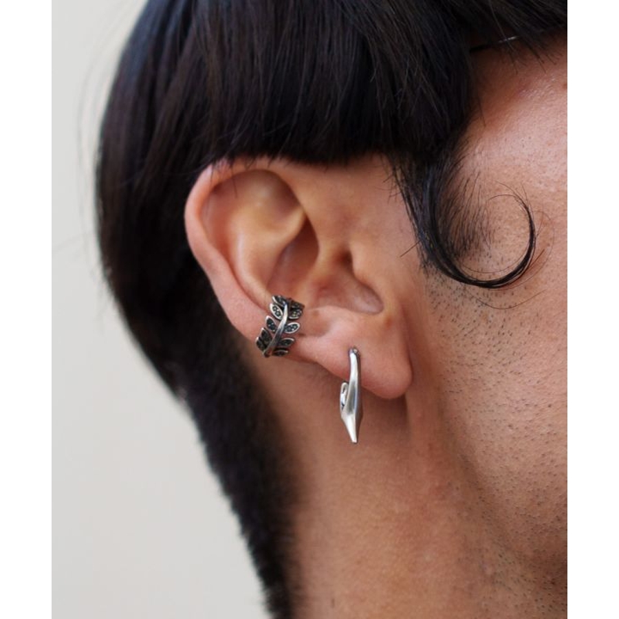 リーフモチーフのシンプルなイヤーカフ。ステンレス素材で水に濡れても錆びにくく、普段使いしやすい。主張しすぎないデザインで男女共にお使いいただけます。