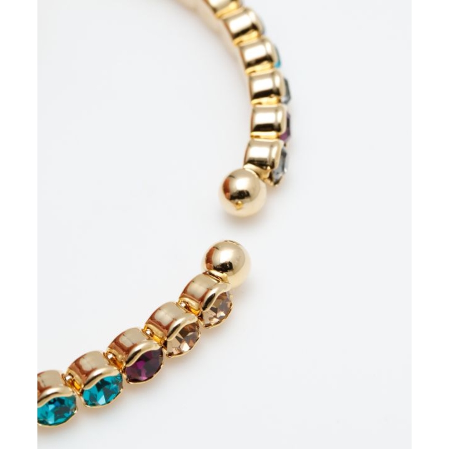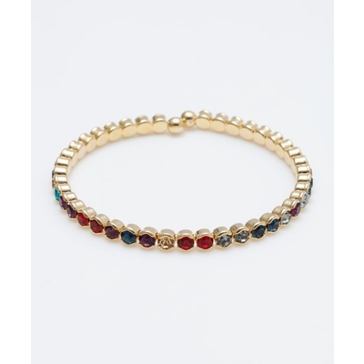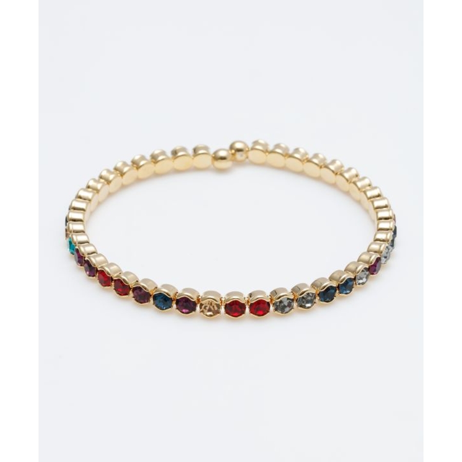 まるでマハラジャの宝石箱のようなブレスレット。大粒のストーンが光を集めて、手首をラグジュアリーに演出してくれます。他のブレスレットとの重ね付けもしやすいシンプルデザインが魅力。サイズ調節可能、フリーサイズで楽しめます。