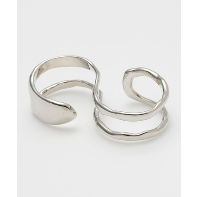 Sの字が二つ重なっているようなデザインのダブルフィンガーリング。存在感はありながらもシンプルなので、他のリングとの組み合わせも楽しめます。サイズ調節可能、フリーサイズで楽しめます。