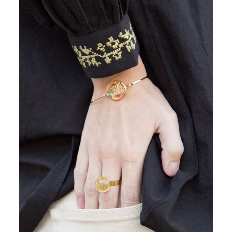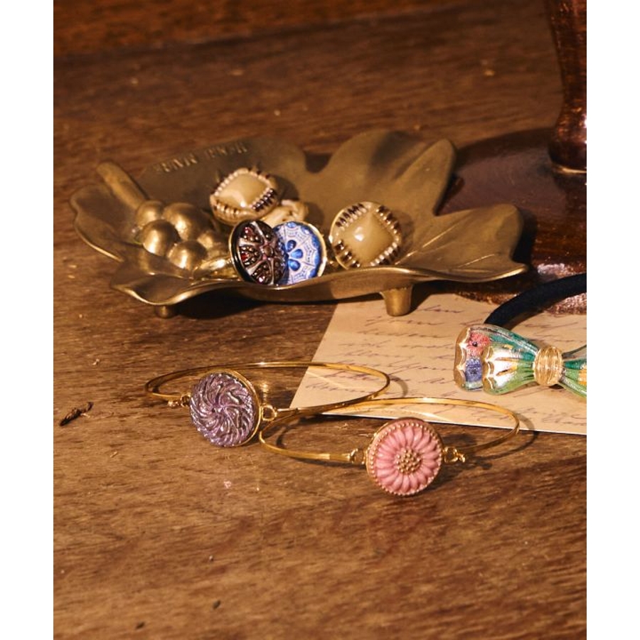 チェコガラスのボタンがきらめくブレスレット。ゴールドメッキと組み合わせたクラシカルなデザインで、手元に上品なアクセントをプラス。