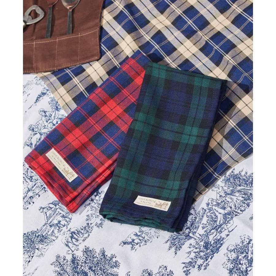 英国のタータンチェックをイメージしたバンダナ。しっかりと厚みのある生地感。バンダナとして使用するのはもちろん、ピクニックやお弁当を包むのにもおすすめ。