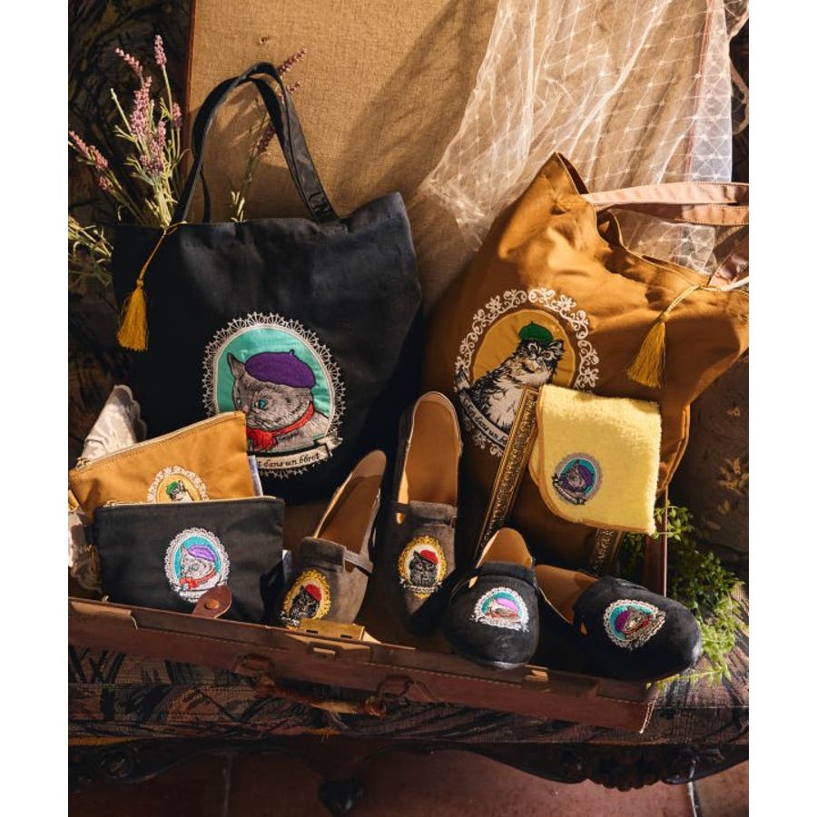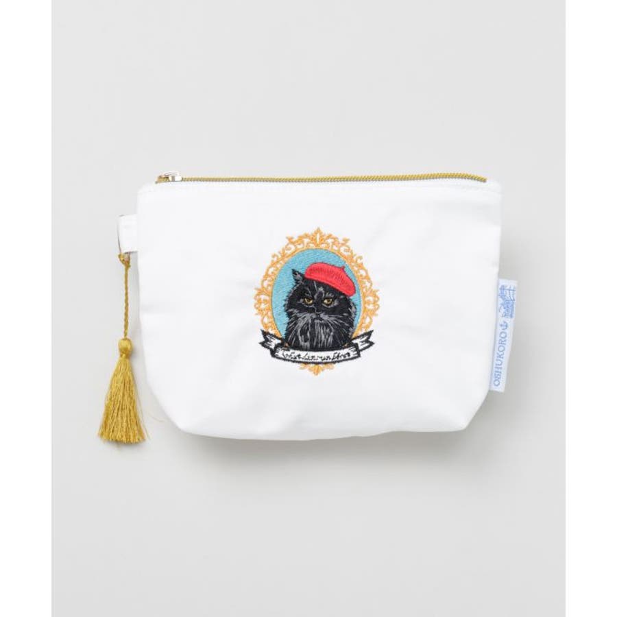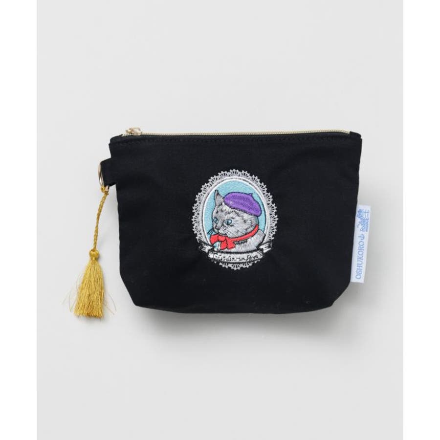 猫のカメオをモチーフにしたポーチ。ベレー帽をかぶった猫は欧州航路だけの特別なデザイン。内側もしっかりとした仕立てで、コスメや小物の整理にぴったりなアイテム。