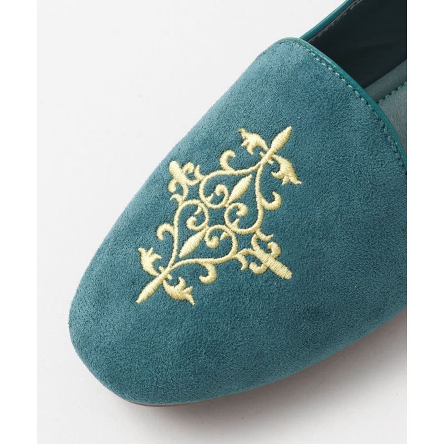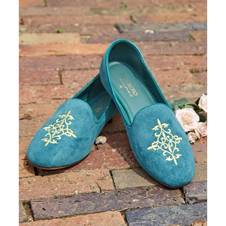 チェコガラスの香水瓶をイメージした金刺しゅうをあしらったオペラシューズ。しっかりと足にフィットしてくれてスマートで印象。足元を上品に演出してくれます。