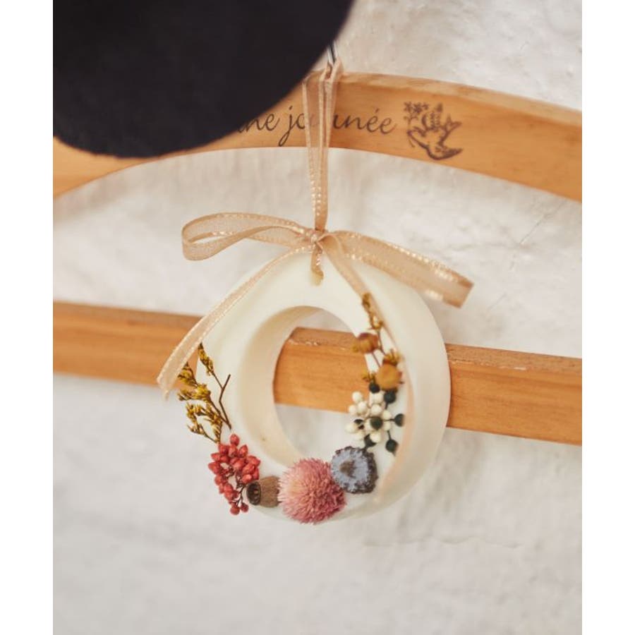 リースのような型が可愛らしいドライフラワー入りサシェ。お部屋に飾るのはもちろん、プレゼントとしてもおすすめです。優しいフローラルの香り。ふわりと匂っていつもの日常がちょっとだけ素敵に。