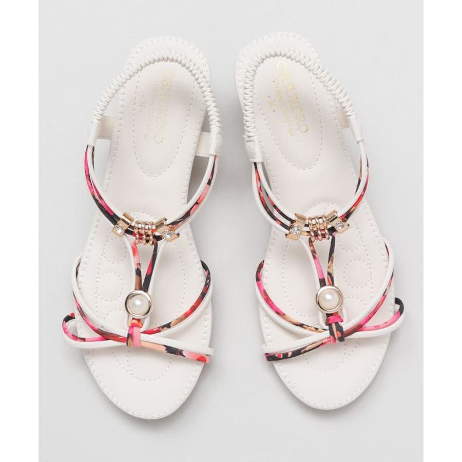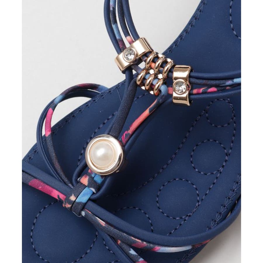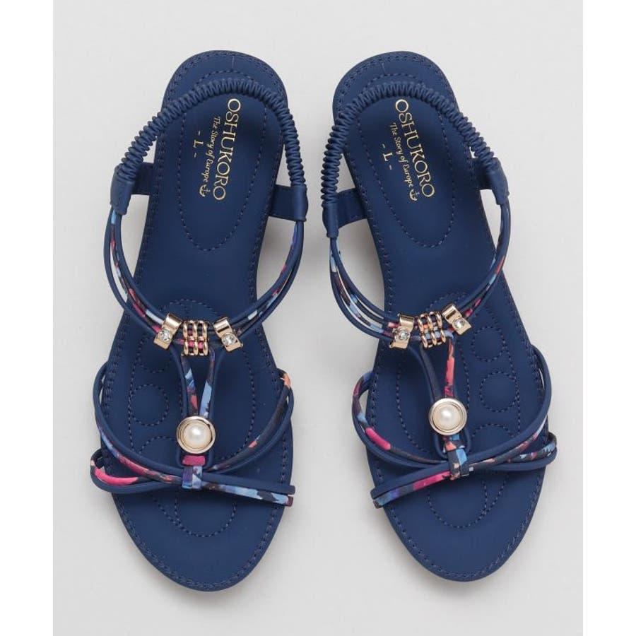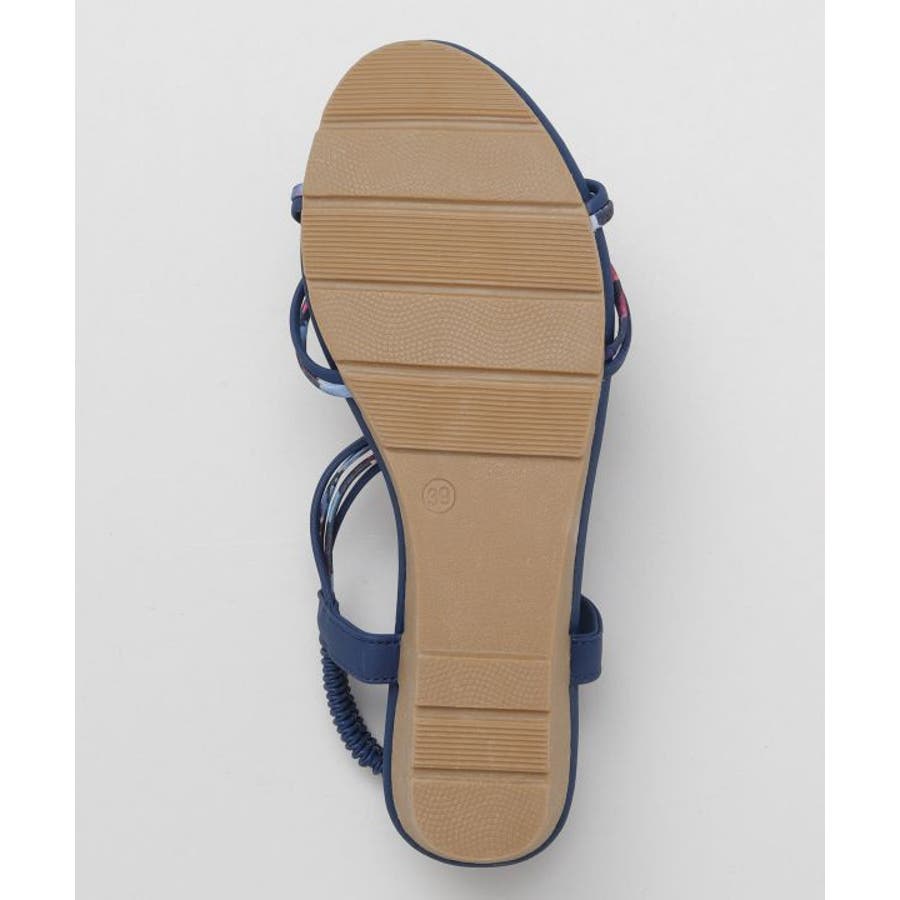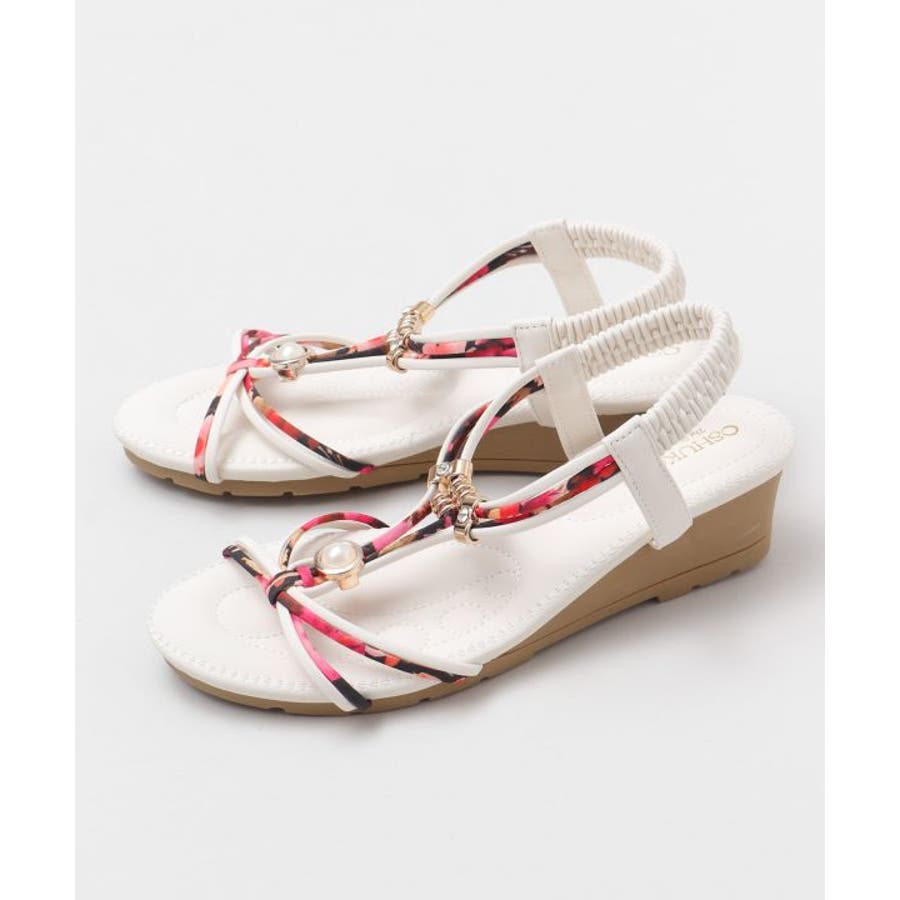 イタリア製のスカーフを使ったストラップがおしゃれなサンダル。バックストラップがゴム仕様で程よく足にフィット。高すぎないウェッジヒールと、クッションが効いたふかふかのインソールで履き心地が良く疲れにくいのがポイントです。メタルパーツで美しく飾られ、華やかな印象。