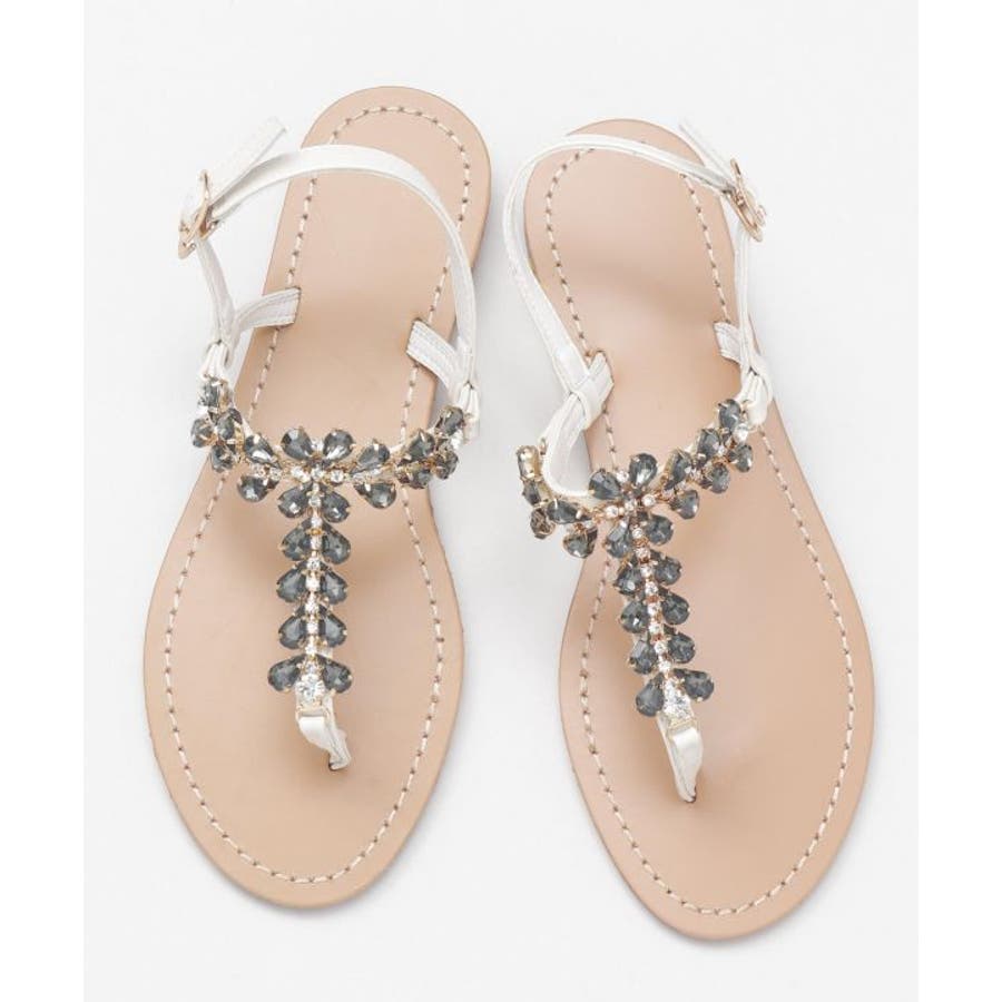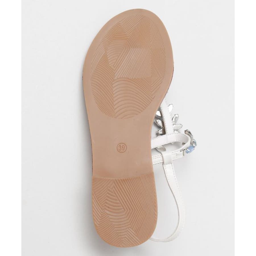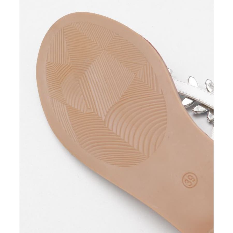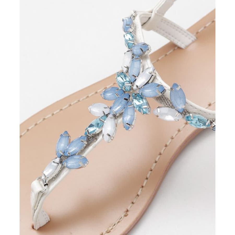 南イタリアにあるカプリ島で作られる、カプリサンダルをイメージしたサンダル。きらきらと輝くパーツが涼しげな印象。クッションなしのインソールはフラットで歩きやすく、シャープなシルエットに。