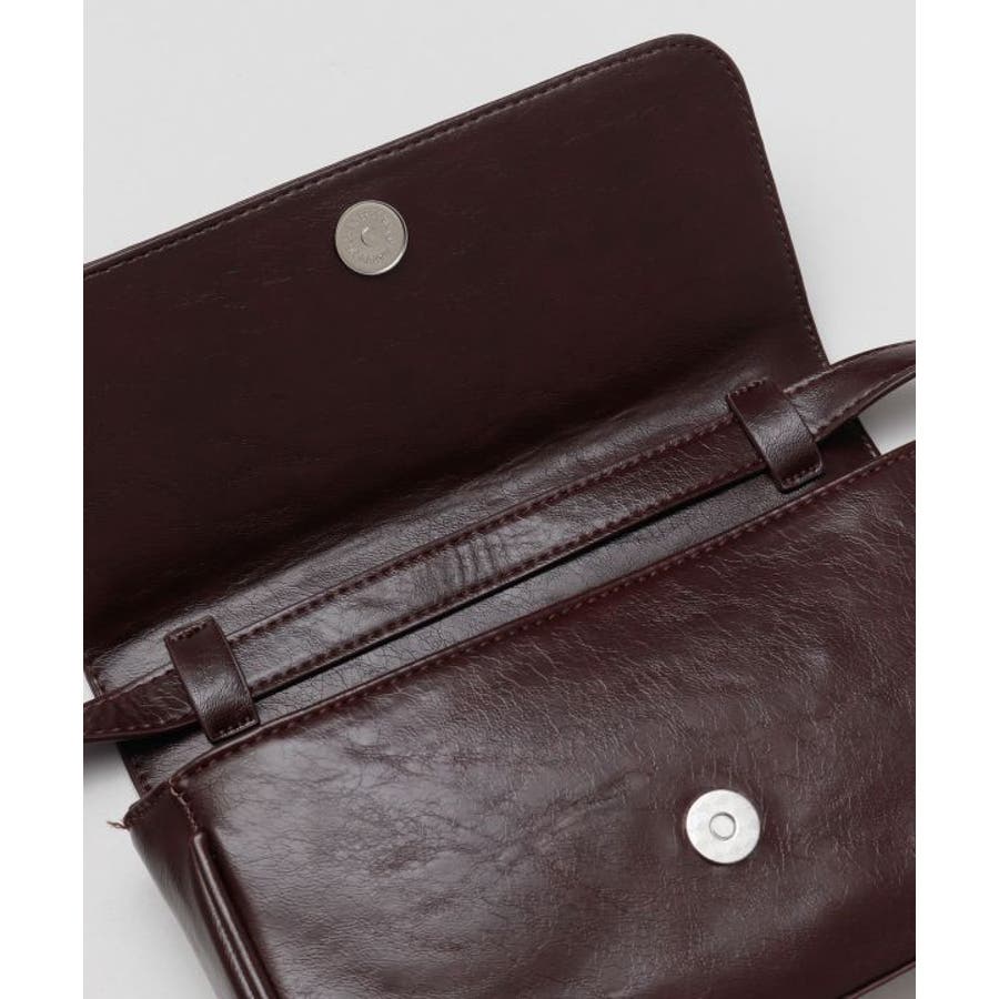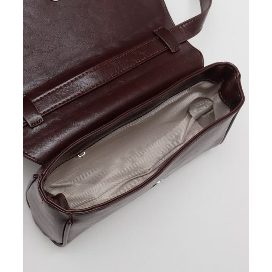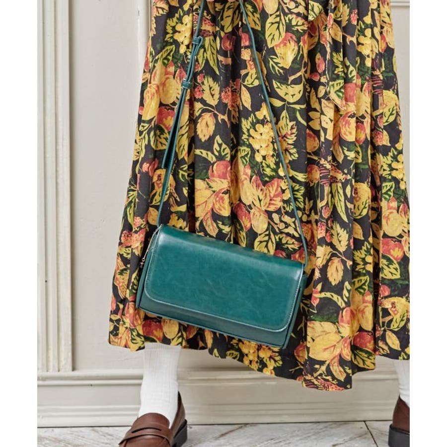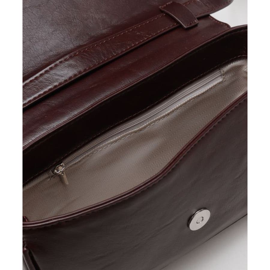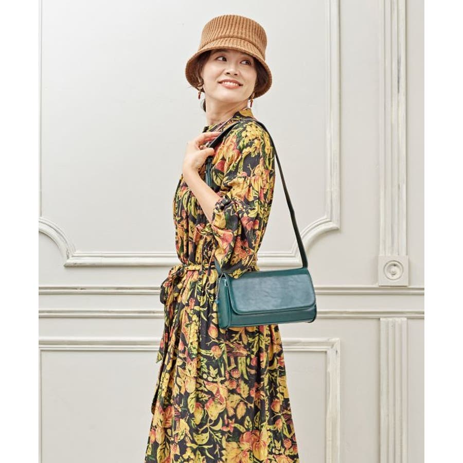 レザー調のコンパクトなショルダーバッグ。シンプルかつクラシカルなデザインで、コーディネートを引き締めてくれます。しっかりした底マチで自立するのも嬉しいポイント。内側は明るく光沢感がある裏地で、バッグの中身が見やすいデザインです。便利なファスナーポケット付き。ショルダーベルトはサイズ調整ができます。