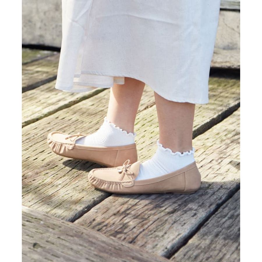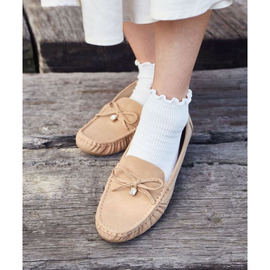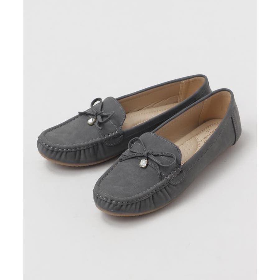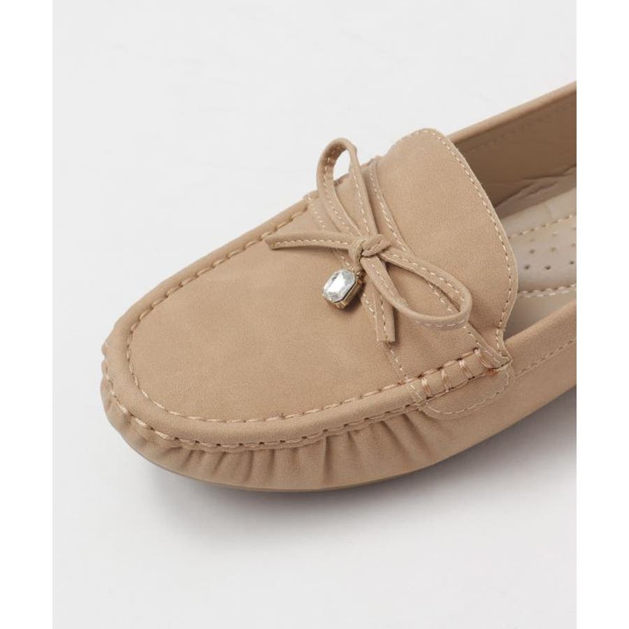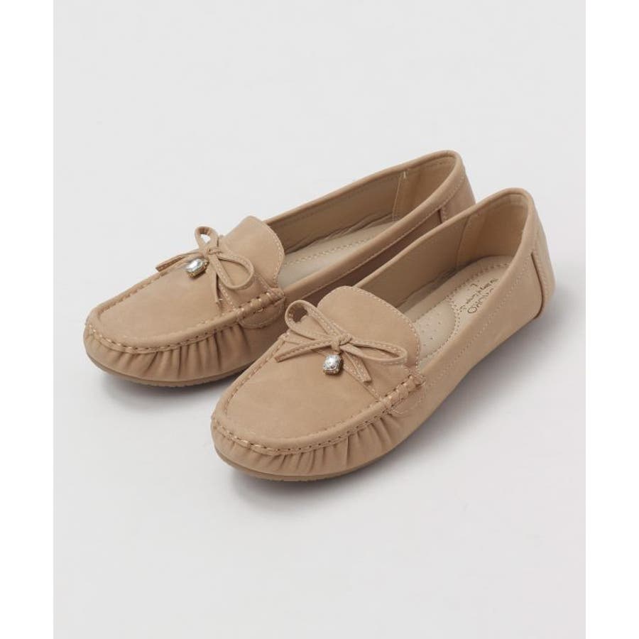 キラリと輝くチャームが可愛らしいモカシンシューズ。生地が柔らかく、底のクッションも効いていて長時間歩いても疲れにくい抜群の履き心地。様々な洋服に合わせやすい色展開で、一年中お使いいただけます。