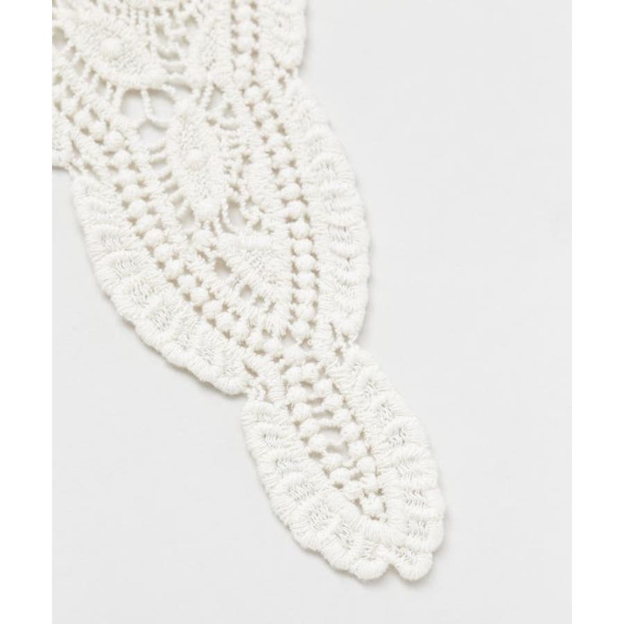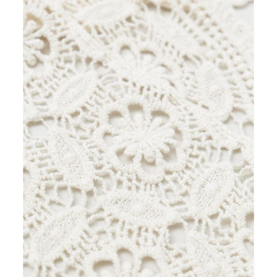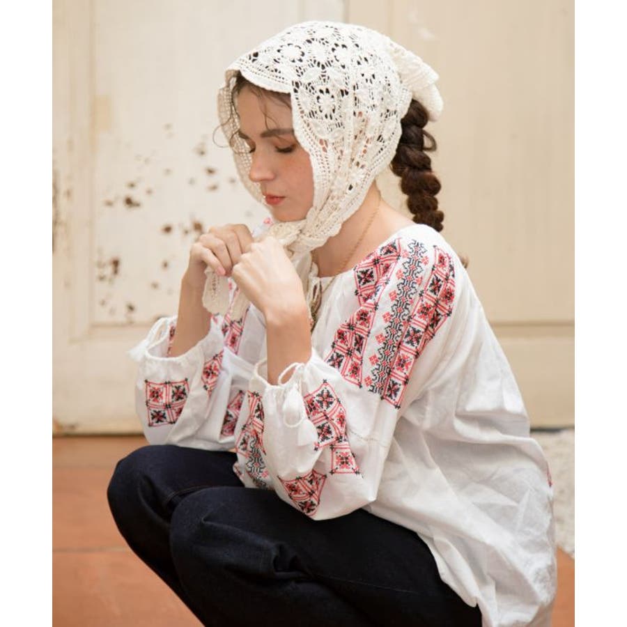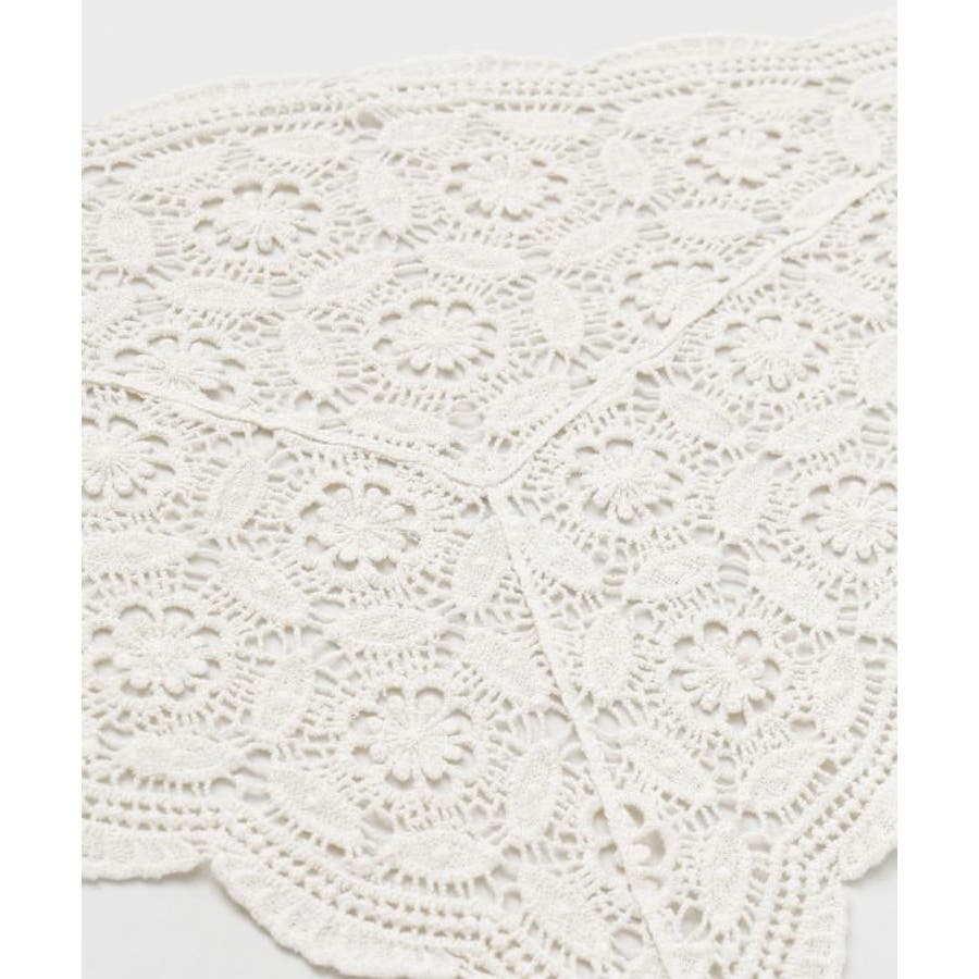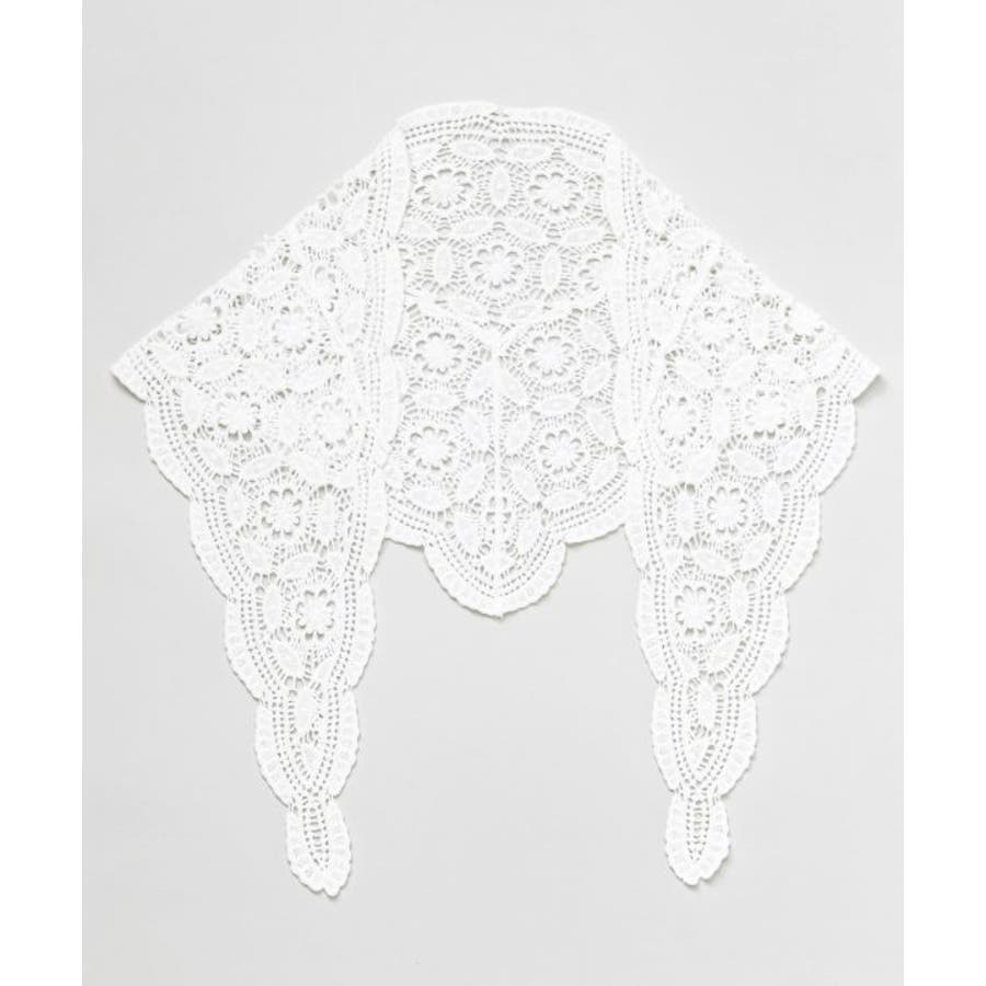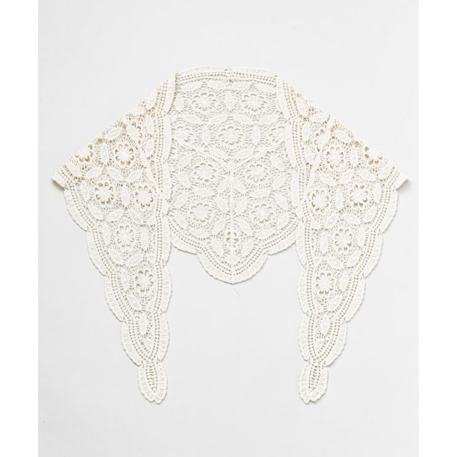 繊細なレースを使用した三角形型のストールは、頭や肩に軽やかに巻ける優雅なアイテム。透け感のある編み模様が、コーディネートにクラシカルな印象を添えます。