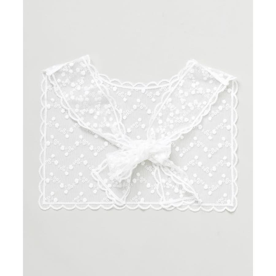 セーラーカラーのレーススカーフ。クラシックな雰囲気と透け感が美しく、シンプルなトップスに重ねるだけで華やかな印象に仕上がります。