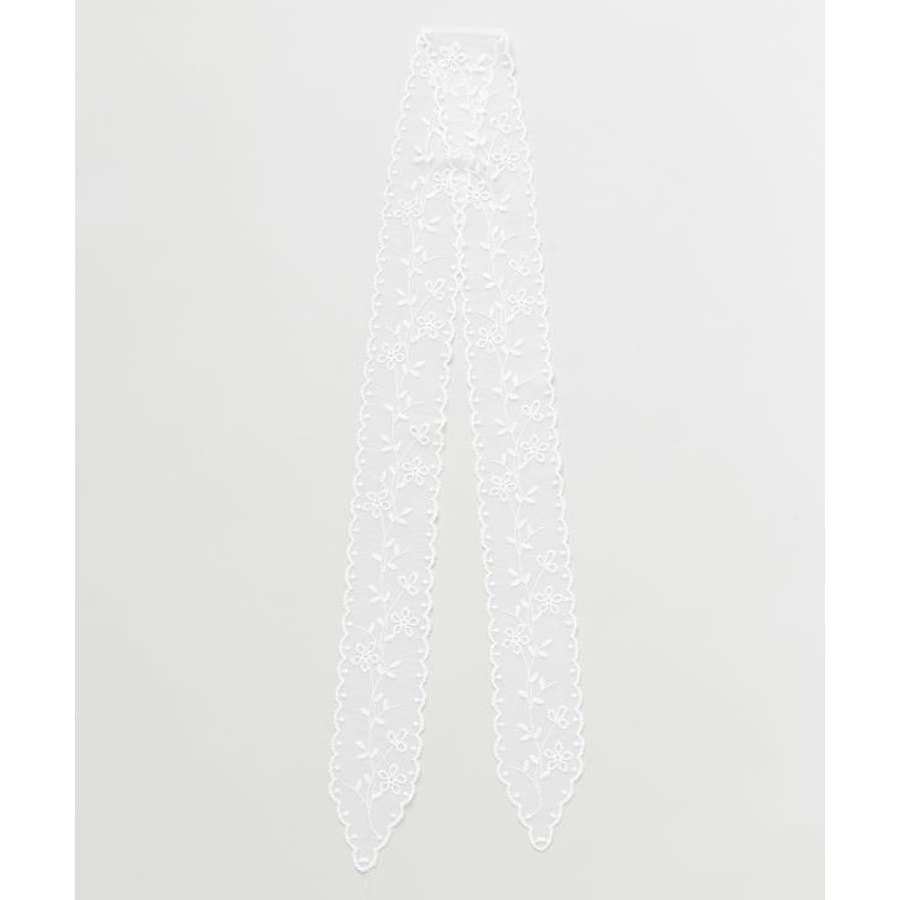 細身のリボンタイプのレースストールは、首元やヘアアクセ、バッグ装飾にも活躍。繊細なレースが軽やかで、コーディネートにアクセントを添えます。