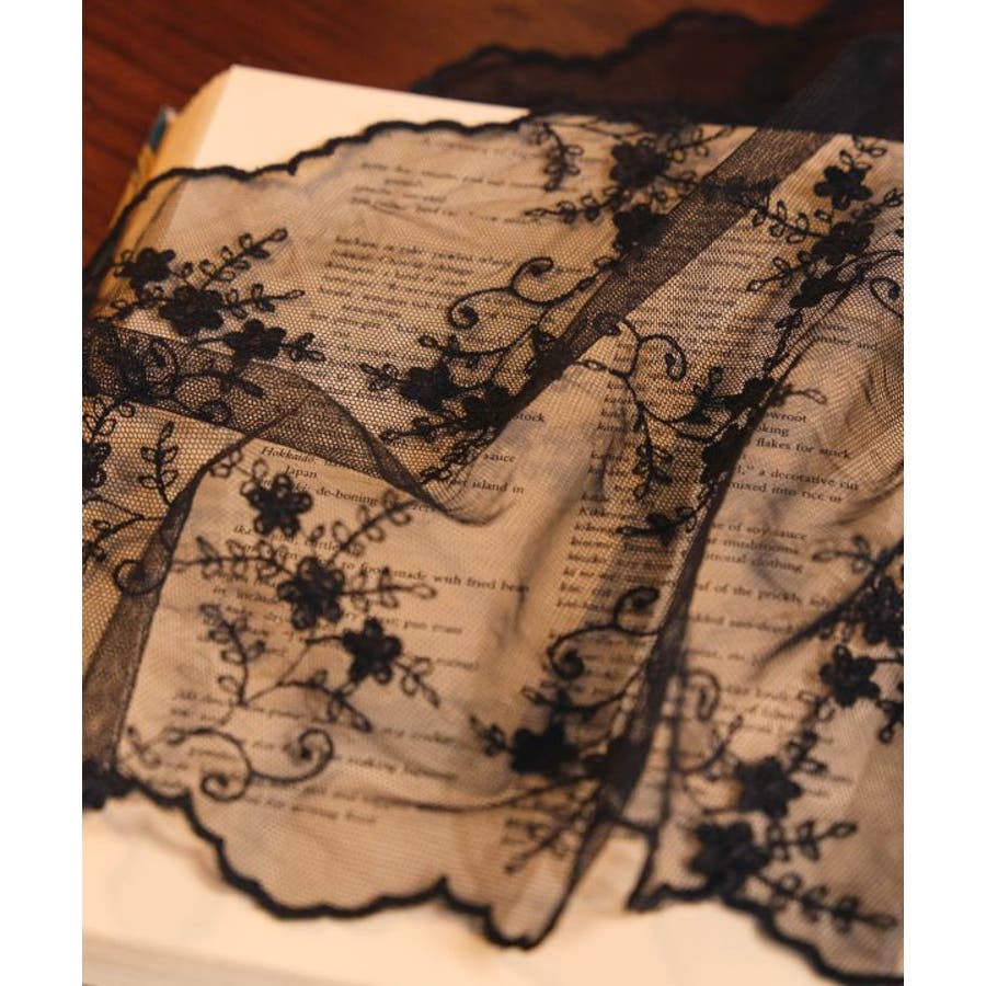三角形のシルエットが印象的なレースストールは、髪や肩に巻くだけで上品なアクセントに。軽やかな透け感と繊細な編み模様が、装いにやわらかな華を添えます。