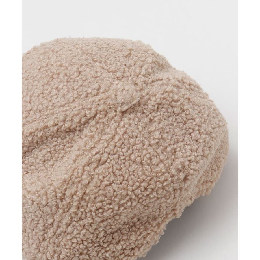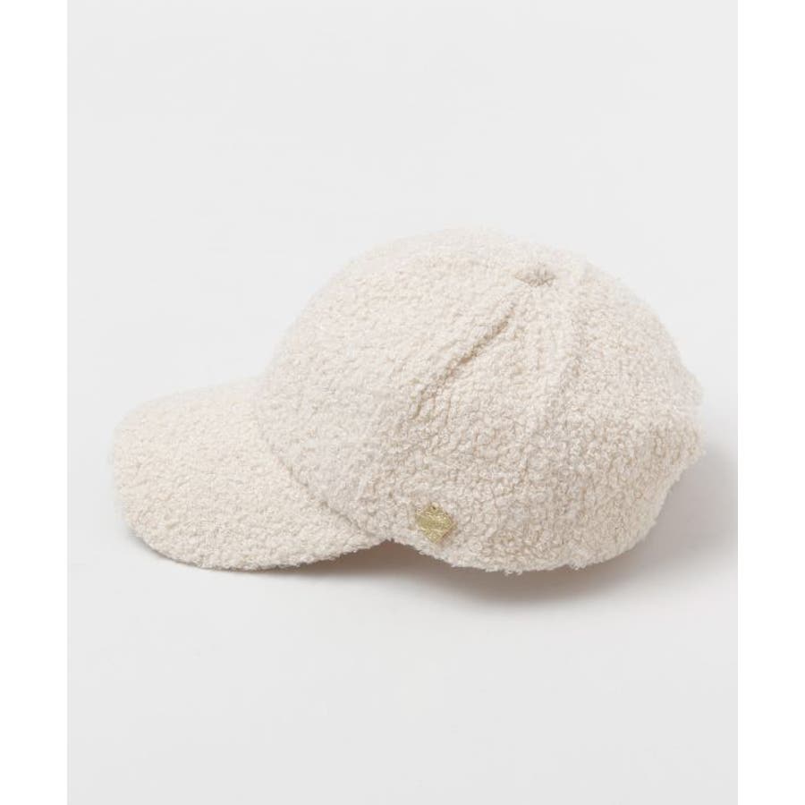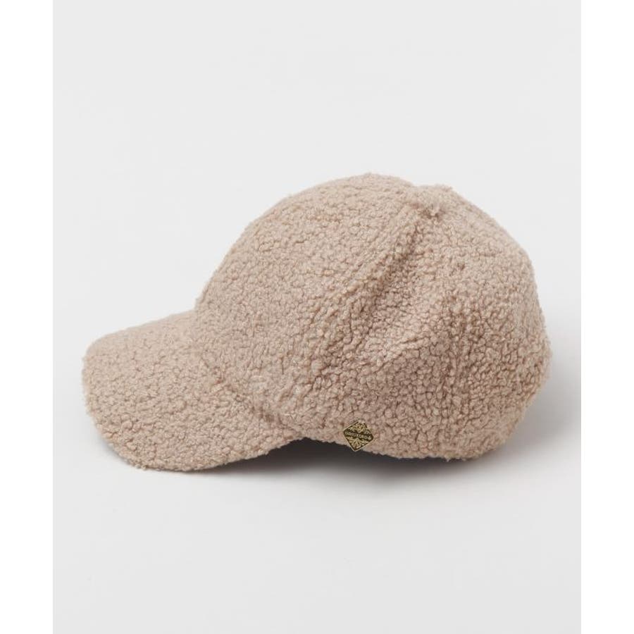 もこもこした素材感がかわいいボアキャップ。さっと被るだけでコーディネートに秋冬らしさを演出してくれます。面ファスナーでサイズ調整可能。ポルトガルタイルをイメージしたデザインのメタルチップ付き。