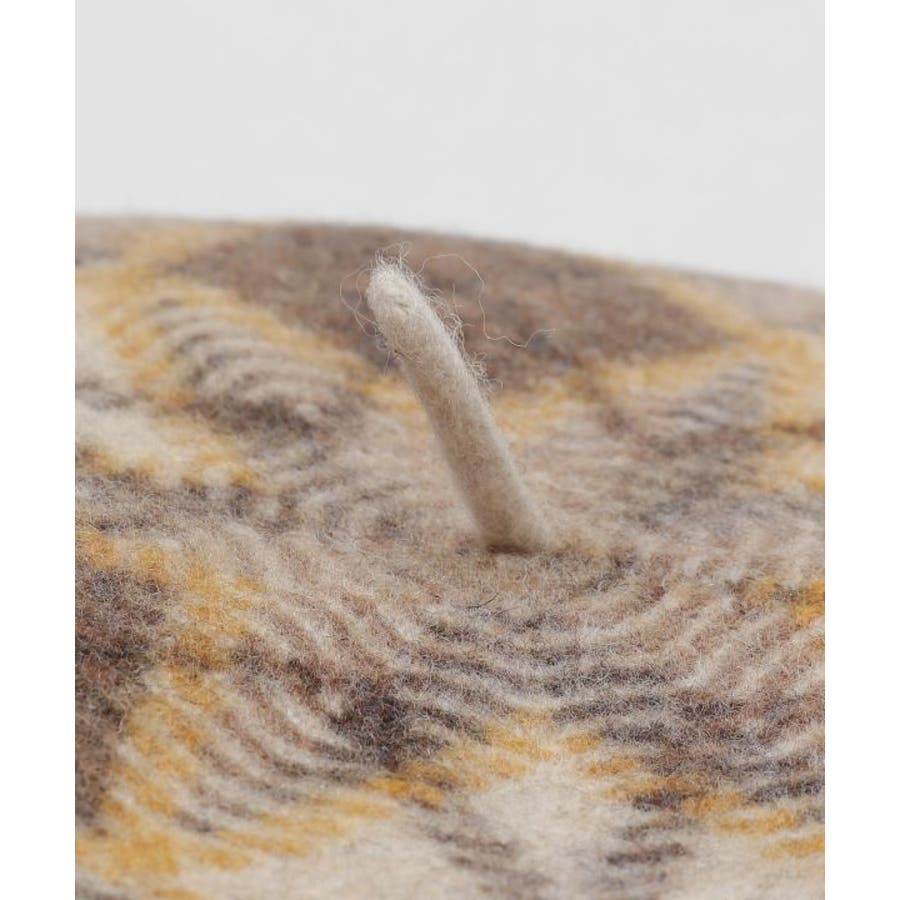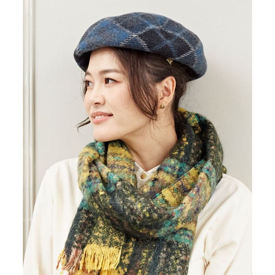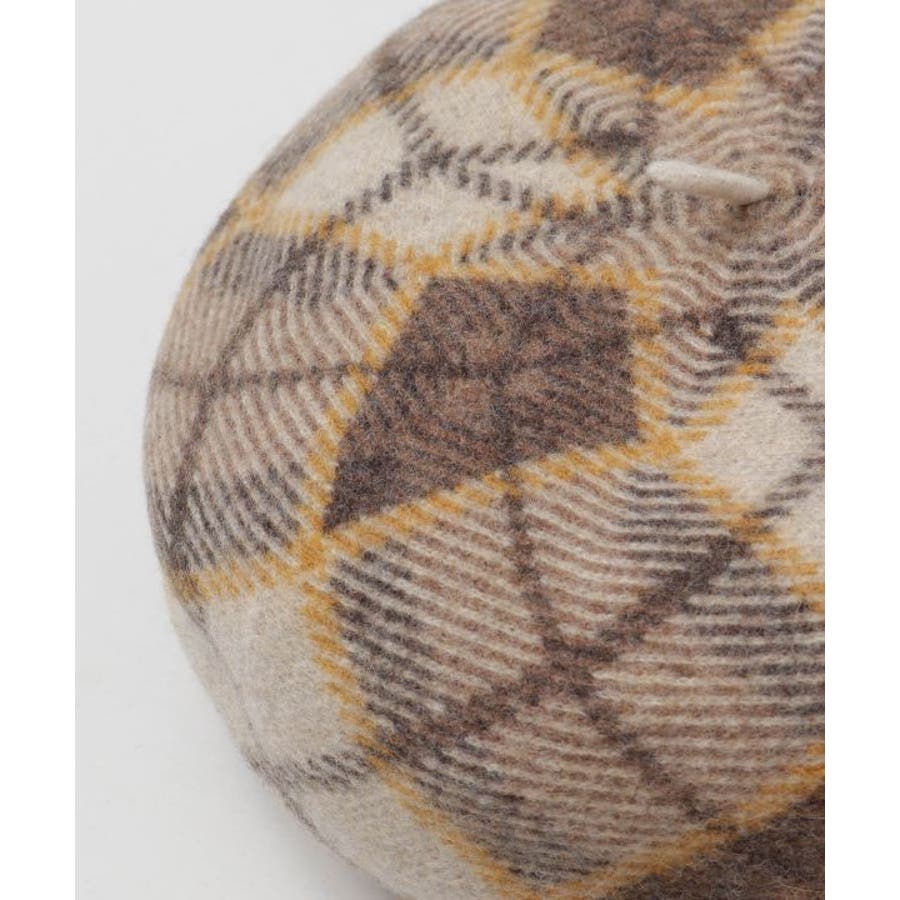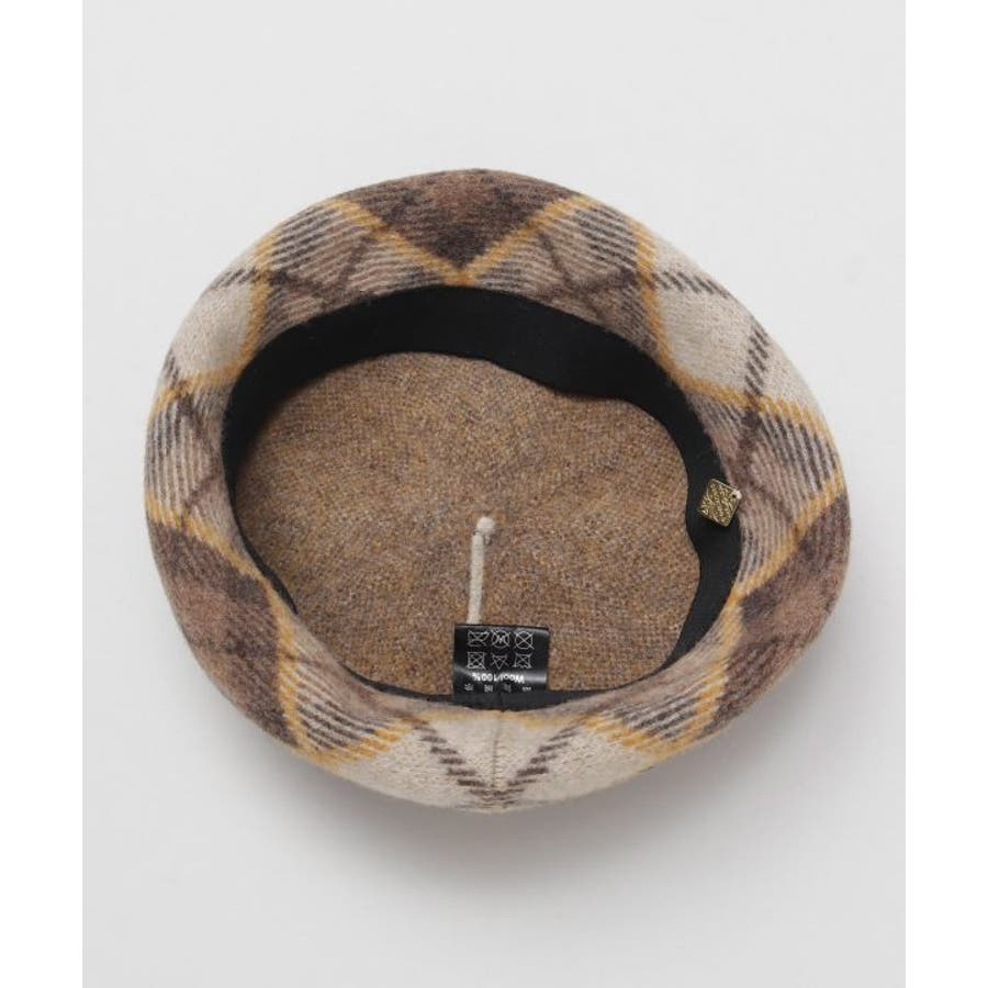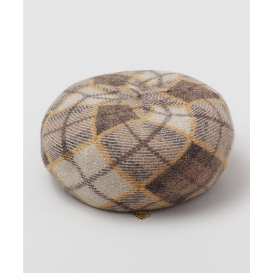 アーガイルチェック柄のベレー帽です。あたたかみのある風合いで、コーディネートに馴染みやすいデザイン。ウール100%使用。被り口がゴムなので、すっぽり頭にフィットします。ポルトガルタイルをイメージしたメタルチップ付き。