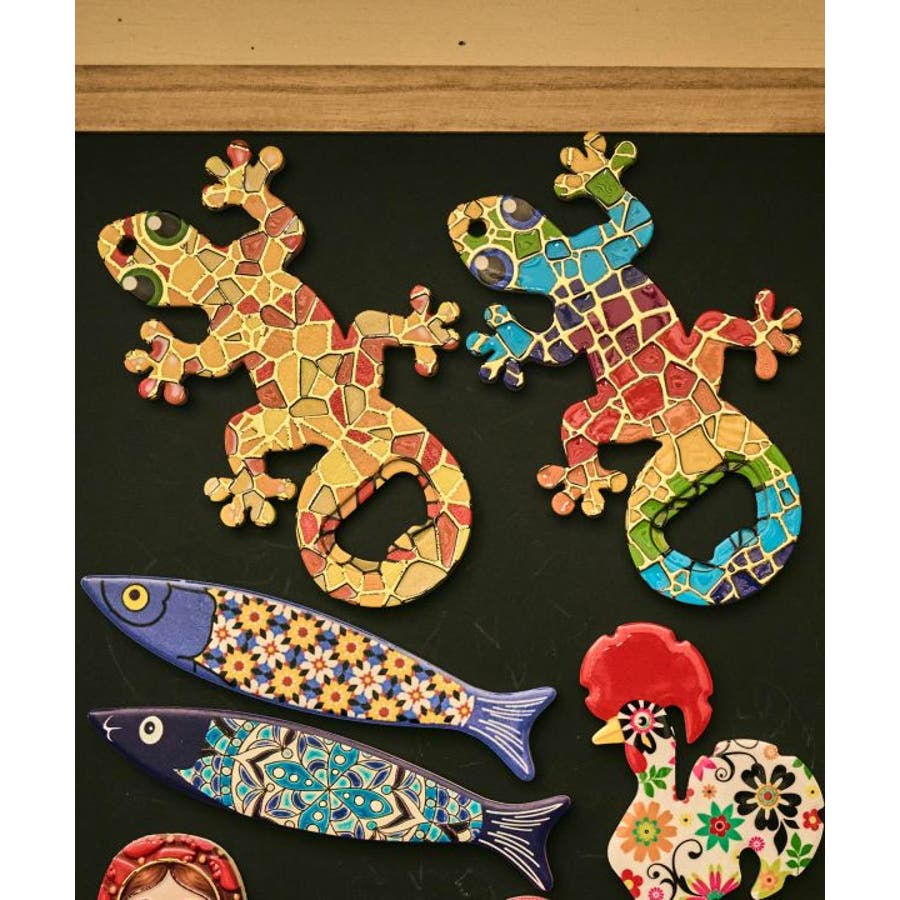 スペイン・バルセロナに思わず行きたくなる、モザイク調のトカゲモチーフのマグネット。手のひらサイズの大きなマグネットは、存在感があるだけでなく、栓抜きとしても使えてとても便利。カラフルな色合いは、見ているだけでも元気がもらえそうです。