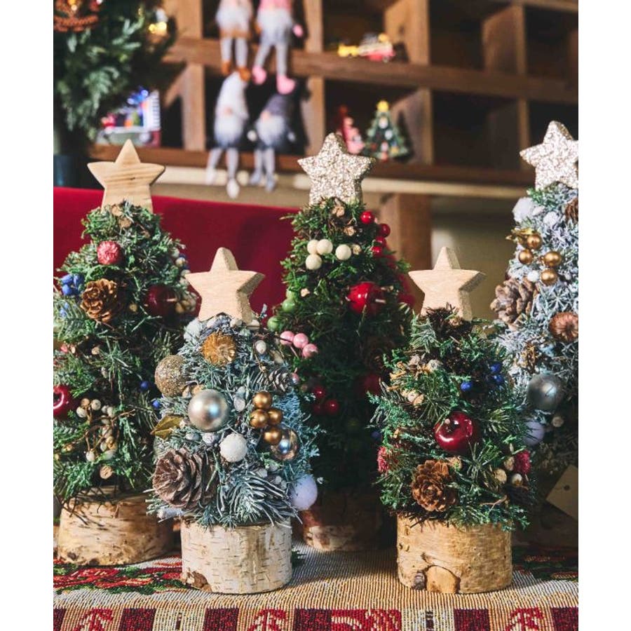 玄関やデスクなど、ちょっとしたスペースにもぴったりなクリスマスツリー。飾りが付いているので、置くだけで簡単にクリスマス気分が味わえます。