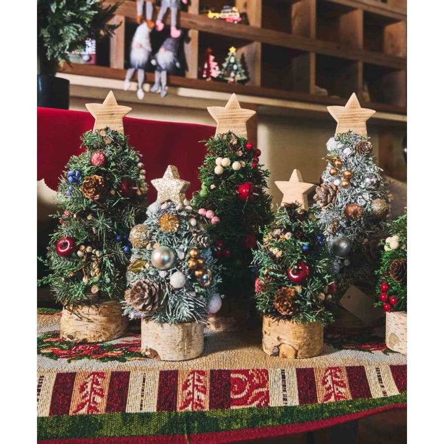 玄関やテーブルなど、小さなスペースにもぴったりなクリスマスツリー。飾りが付いているので、一つ置くだけでお部屋がたちまちクリスマスムードに。