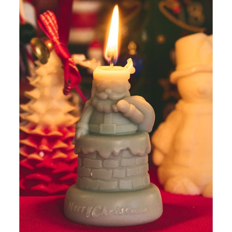 煙突に入ってプレゼントを届けようとしているサンタクロースの姿がキュートなキャンドル。リラックス効果の高いキャンドルは、プレゼントにも喜ばれます。