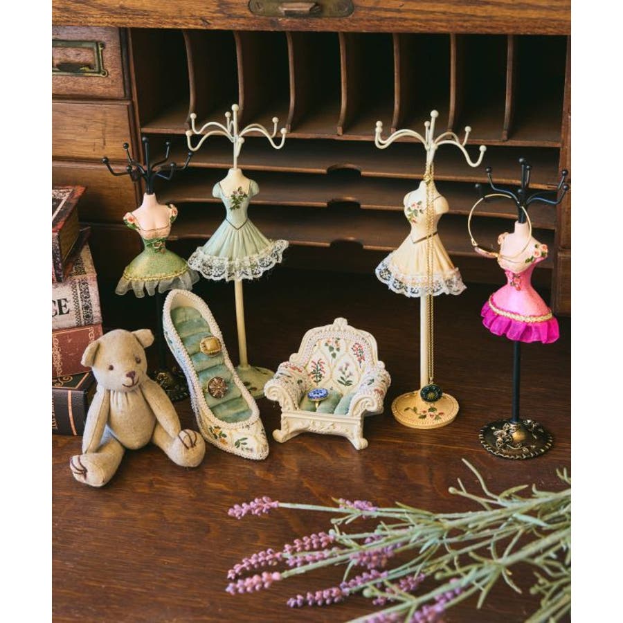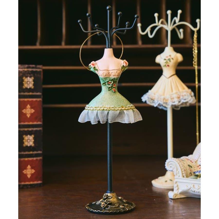 ミニサイズながらも存在感あるミニドレススタンド。繊細な装飾が印象的で、お気に入りのアクセサリーを引き立てるインテリアアイテムです。